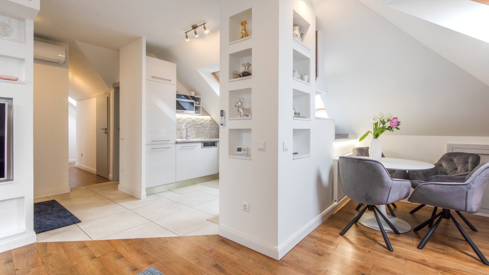 A lakások modern burkolatokkal, igényes belső kialakítással, beépített bútorokkal és jól használható terekkel rendelkeznek.