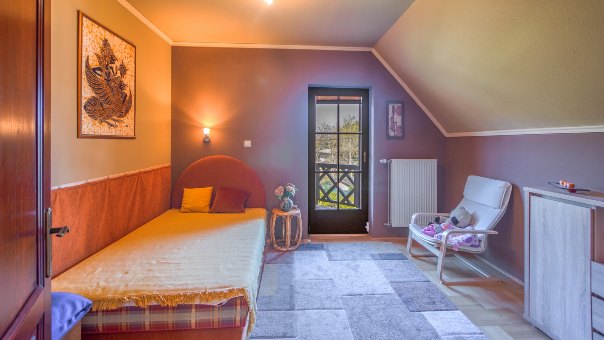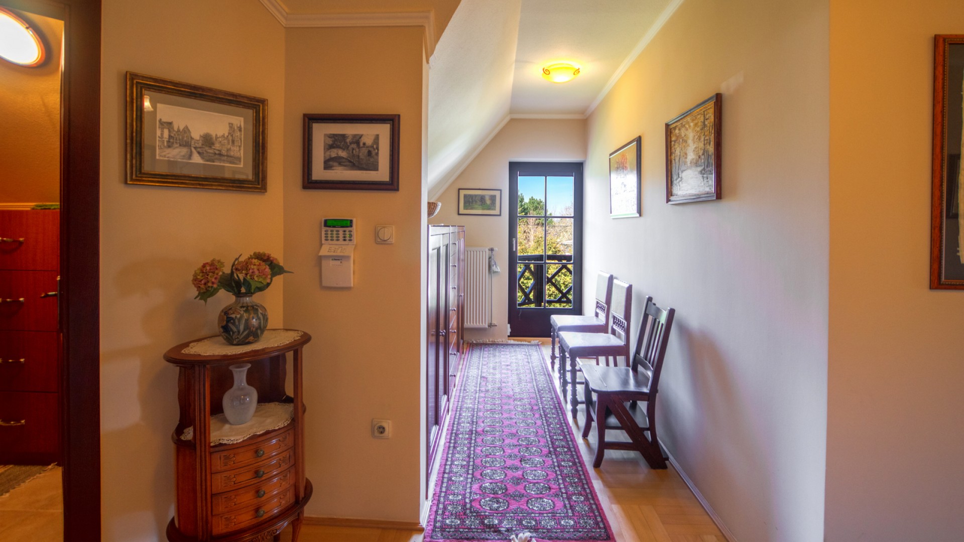 A csendes, panorámás, családi házas környezetben, lévő ingatlan 2004-ben épült 38-as Porotherm téglából.A tető Tondach hódfarkú cseréppel borított. A tetőtérben 15 cm vastagságú Therwoolin hőszigetelő ásványgyapot található, párazáró fóliával és 25 mm vastag padlóval borítva, hogy járható legyen a padlástér.