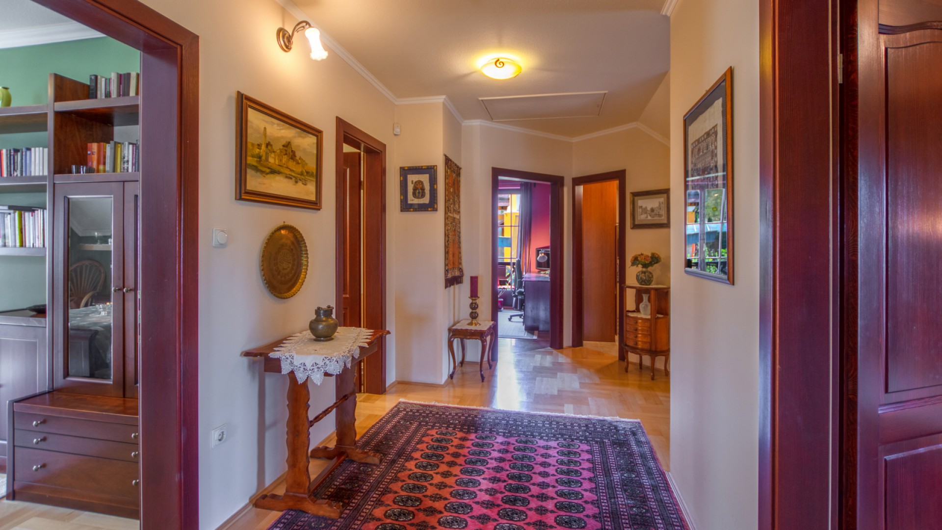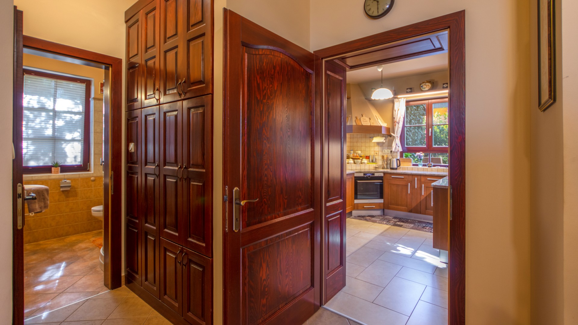 A szobákban beépített házitelefon, computeres LAN és TV kábel (UPC) hálózat, melyet a pincei elosztó központból lehet vezérelni. Az egész ház WIFI lefedettsége 3 db routerrel biztosított.