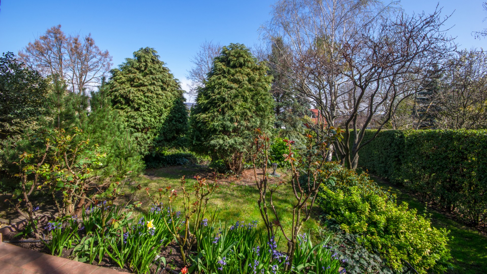 A kert parkosított, gyönyörűen karban tartott. A konyhakertben 9 db magas ágyás található és egy 4.4 m2-es üvegház, ami elektromos fűtéssel és termosztáttal kiépített.