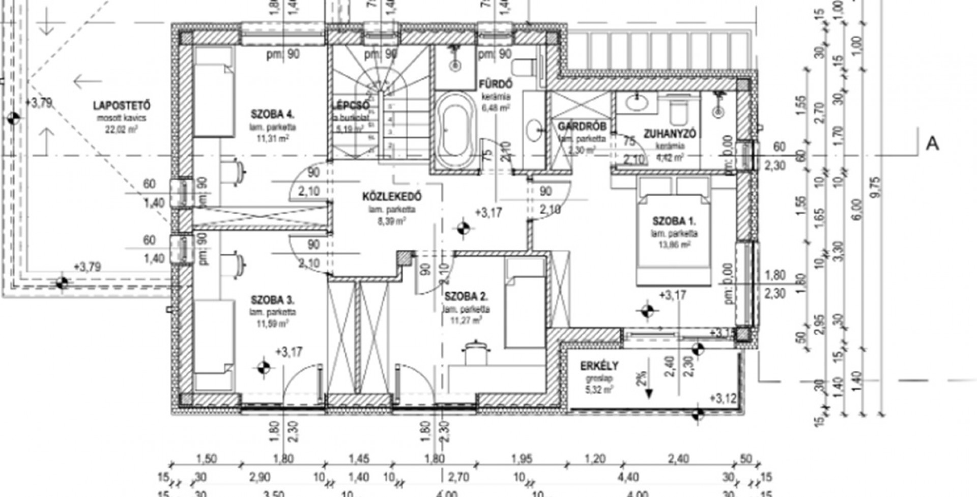 A nettó lakótér 151,07 nm + 20,79 + 5,32 nm erkély