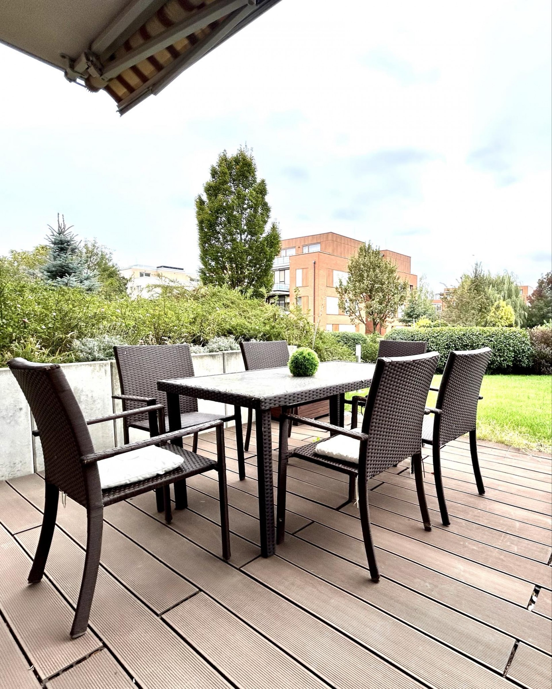 A nyugati tájolású ingatlan amerikai-konyhás nappalija egyedileg készített beépített bútorokkal, 20 nm-es terasszal és kertész által gondozott parkkal várja igényes bérlőit. A teraszt elektromos árnyékoló védi az erős napsütéstől.