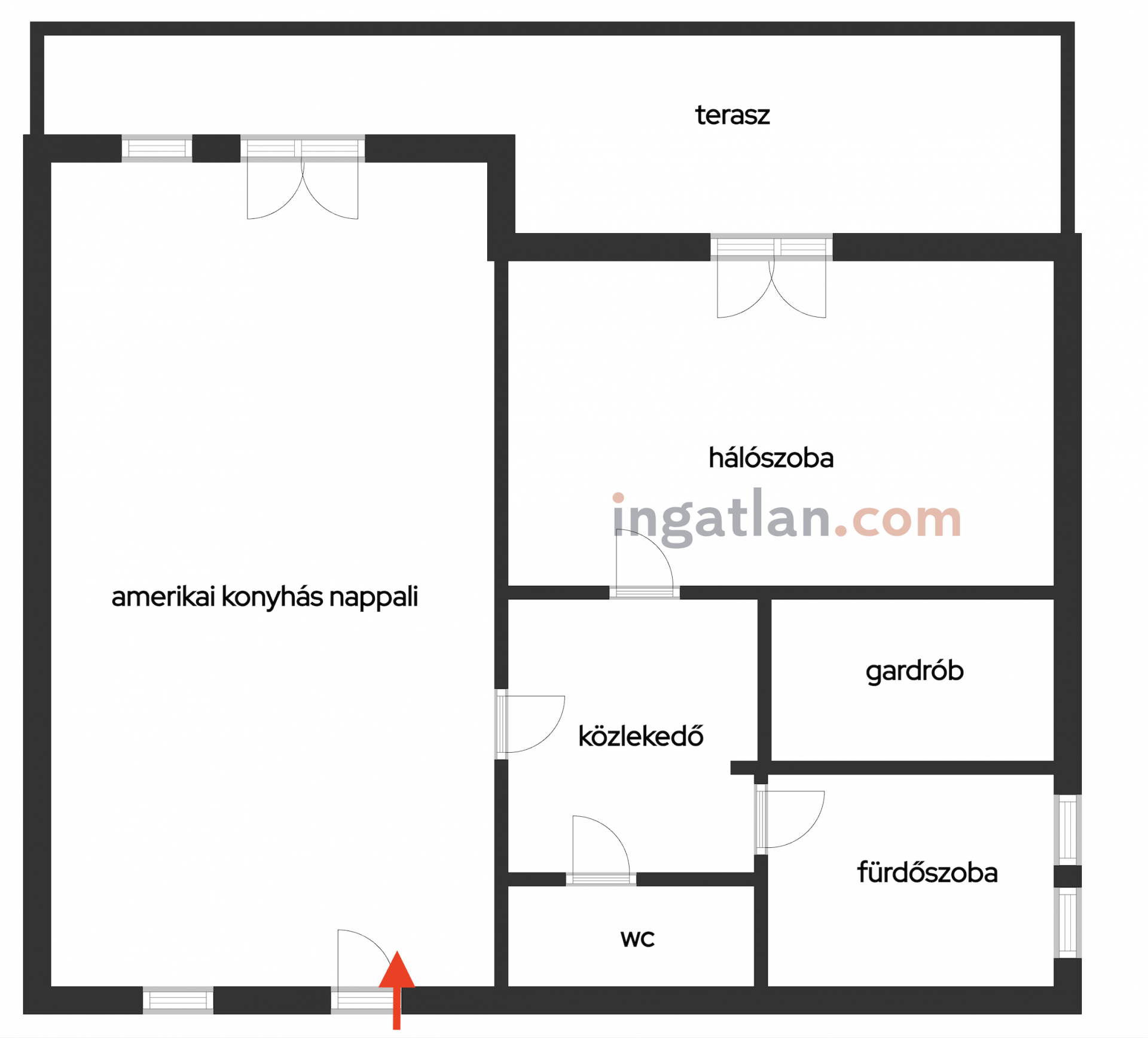 • külön nyíló hálószoba (terasz kapcsolatos)