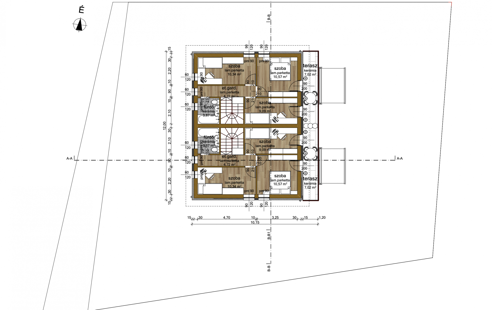 - Lakások mérete: bruttó 87,7 m² + 7,02 m² terasz