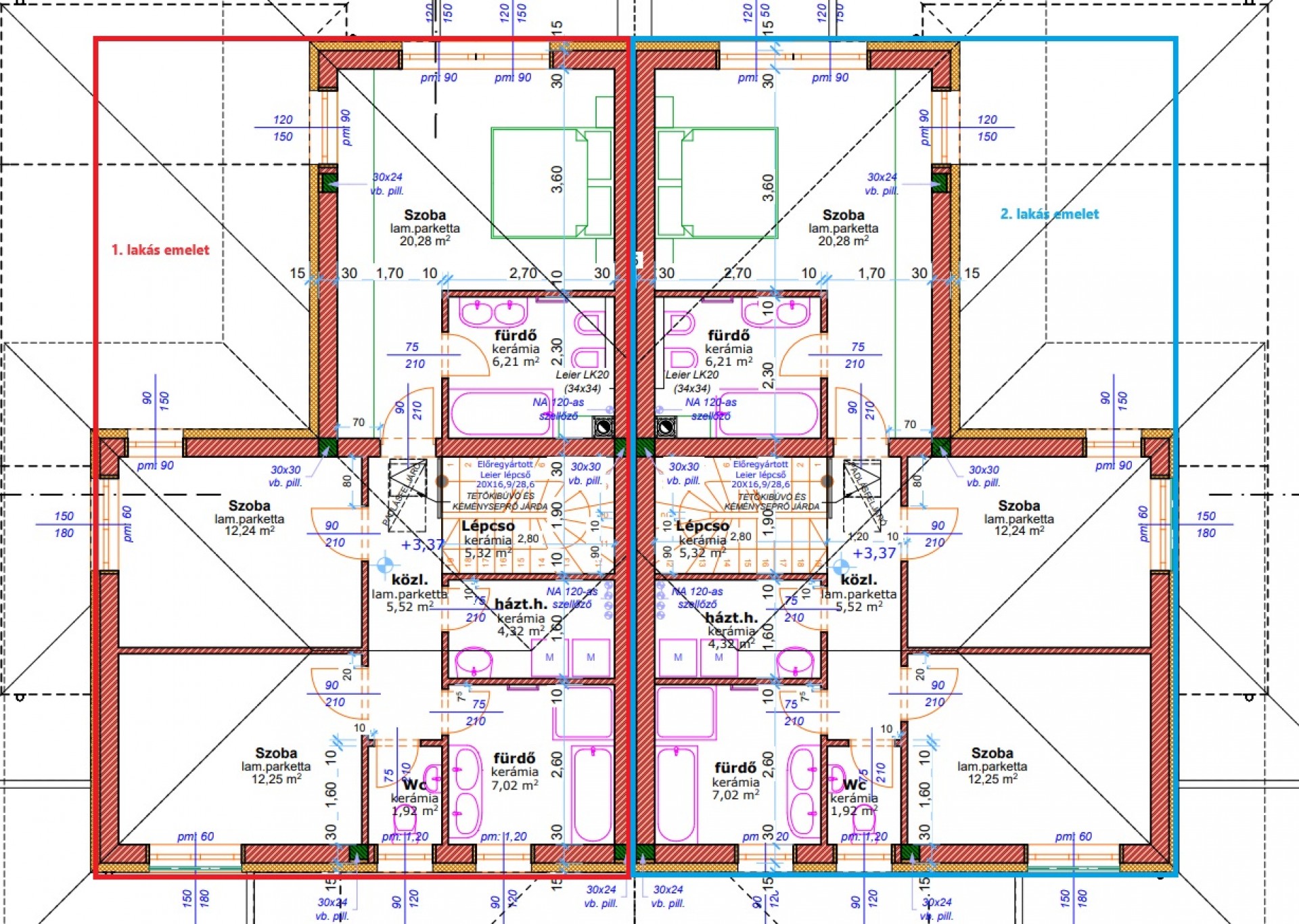 - a lakások 2x30cm vastag Porotherm X-therm teherhordó falazattal érintkeznek, falak között légréssel,