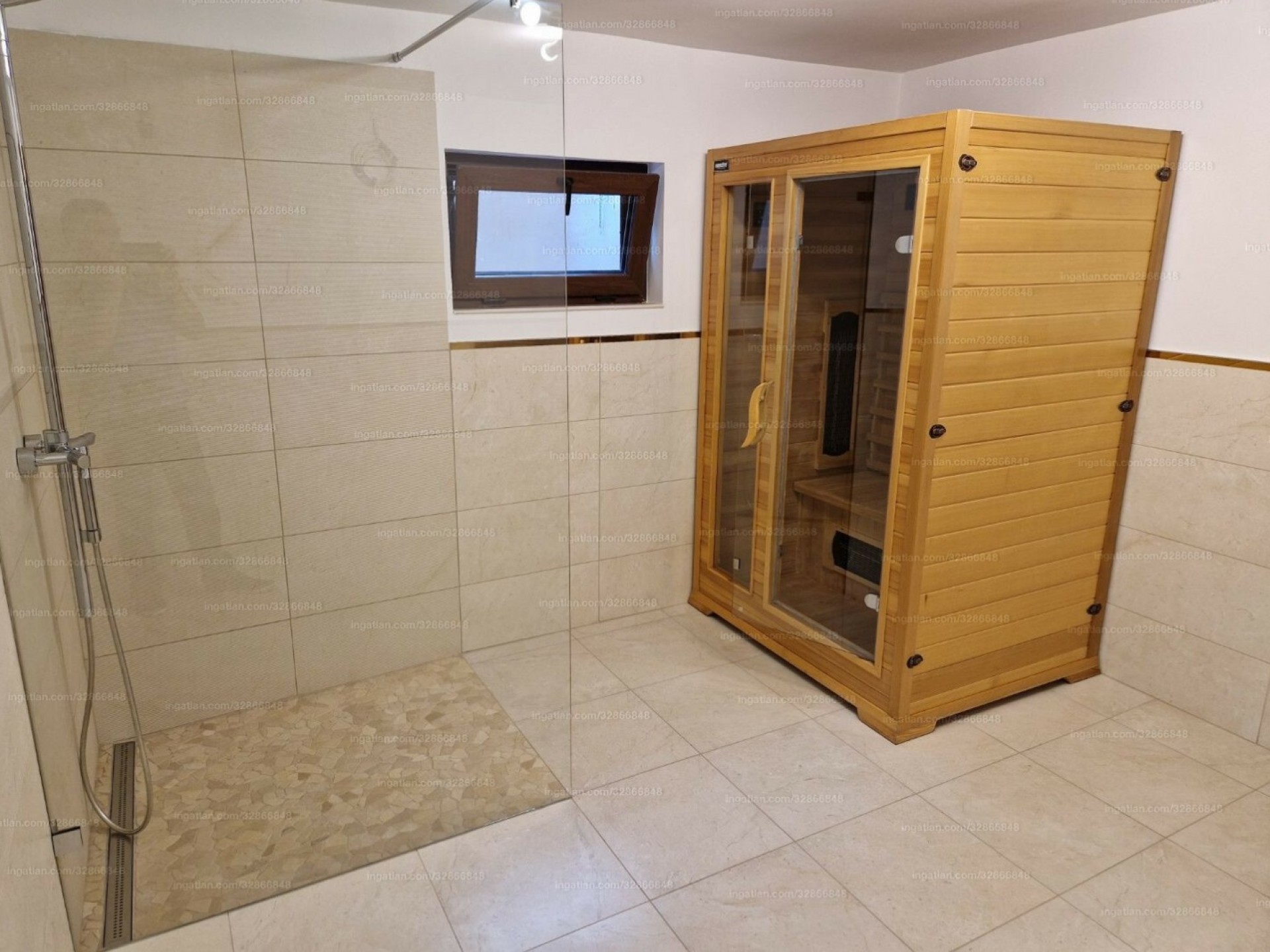 - pince szint: garázs 45 m2, wc, mosó helyiség 11 m2, zuhanyzó - szauna- kondi helység11 m2, fedett tároló 30 m2.