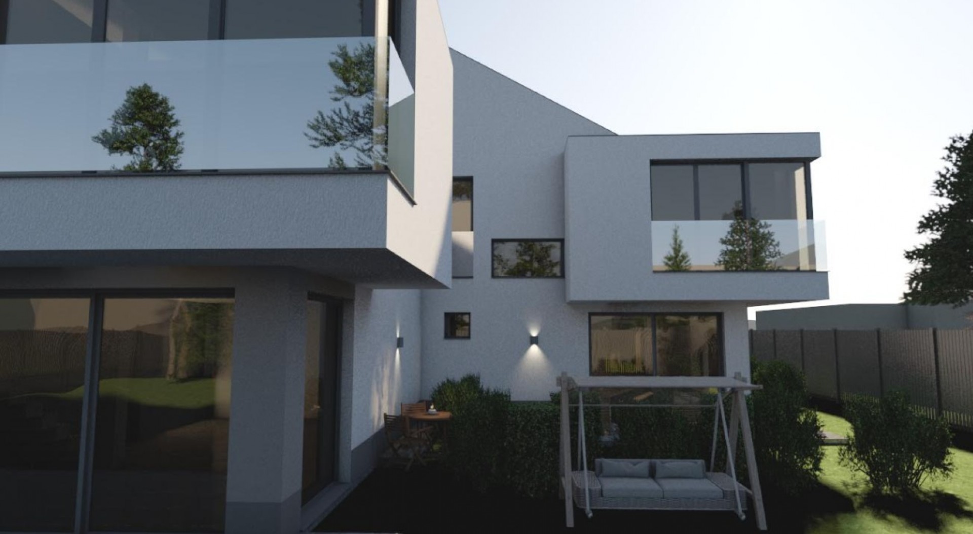 Modern, 5 szobás ikerházfél eladó Diósd csendes részén, 465 nm saját kerttel, garázzsal, napelemmel, két fürdővel.