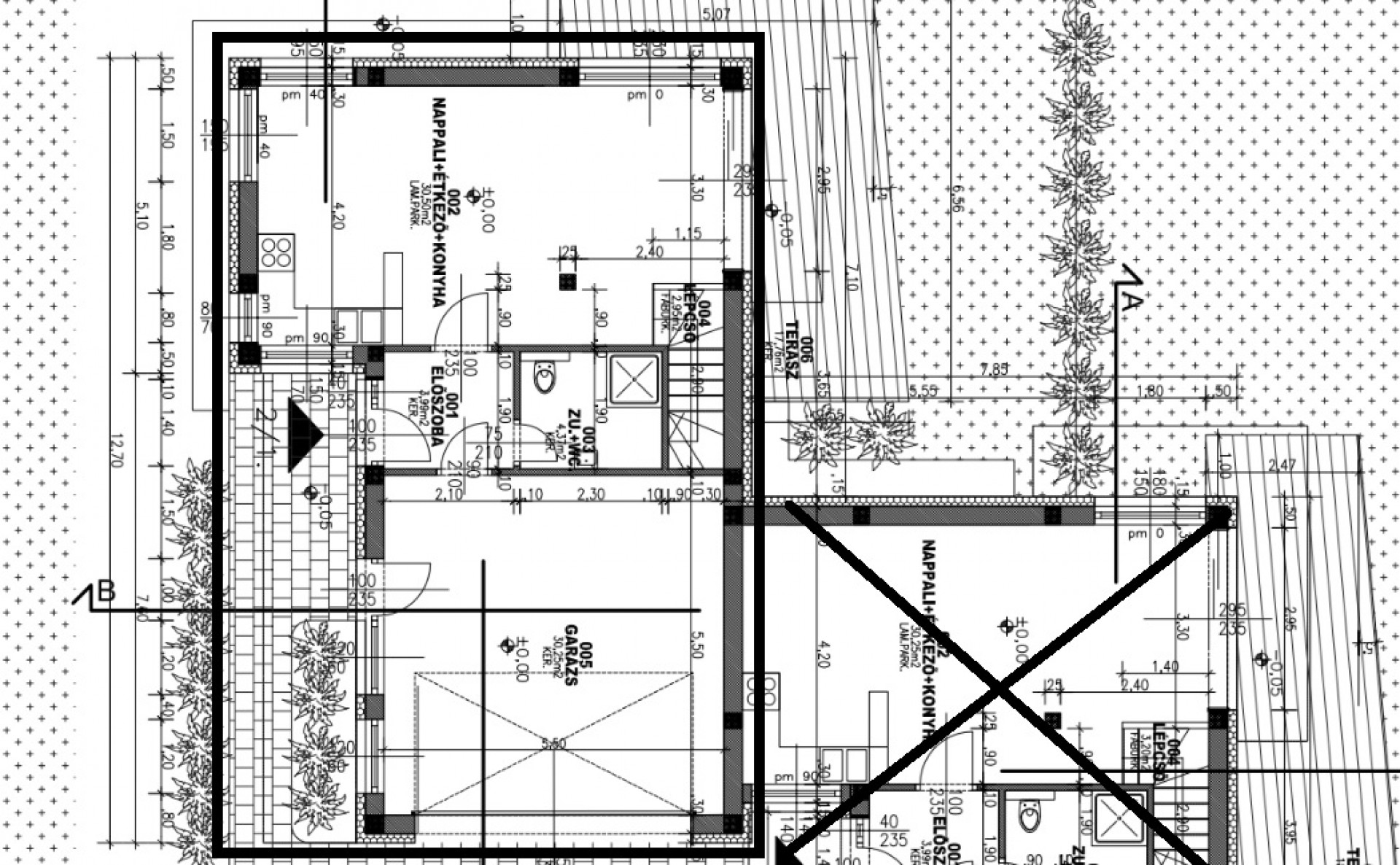 - Földszint: előszoba, amerikai konyhás nappali, zuhanyzós fürdő