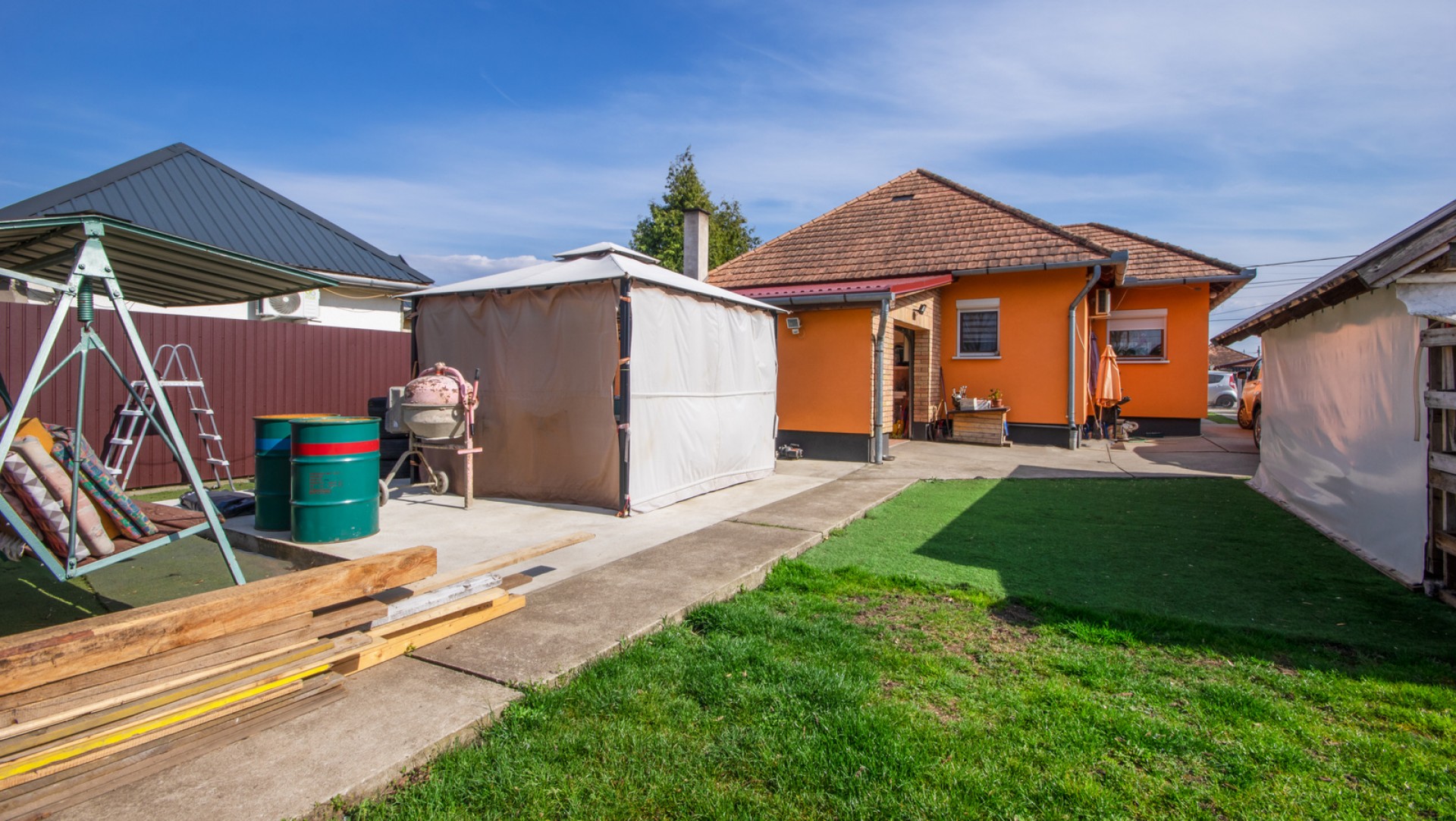 A telken található egy 19 m²-es garázs, valamint fedett autóbeálló. Továbbá az elektromos úszókapu kényelmes bejutást biztosít, az udvaron akár 4–5 autó parkolása is megoldott.