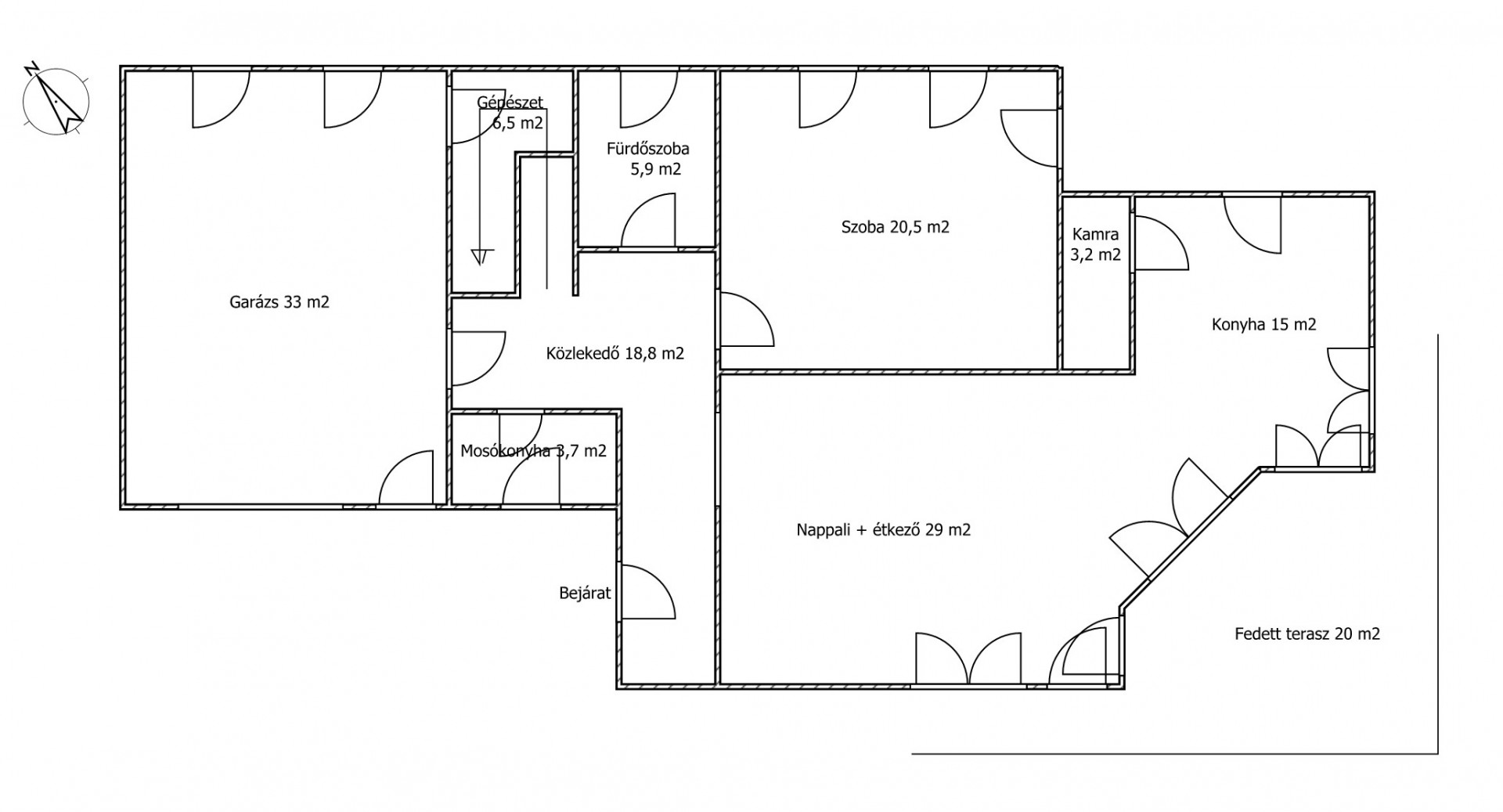 kamra 3,2m2, fürdőszoba 5,9m2, mosókonyha 3,7m2, közlekedő 18,8m2, gépészeti