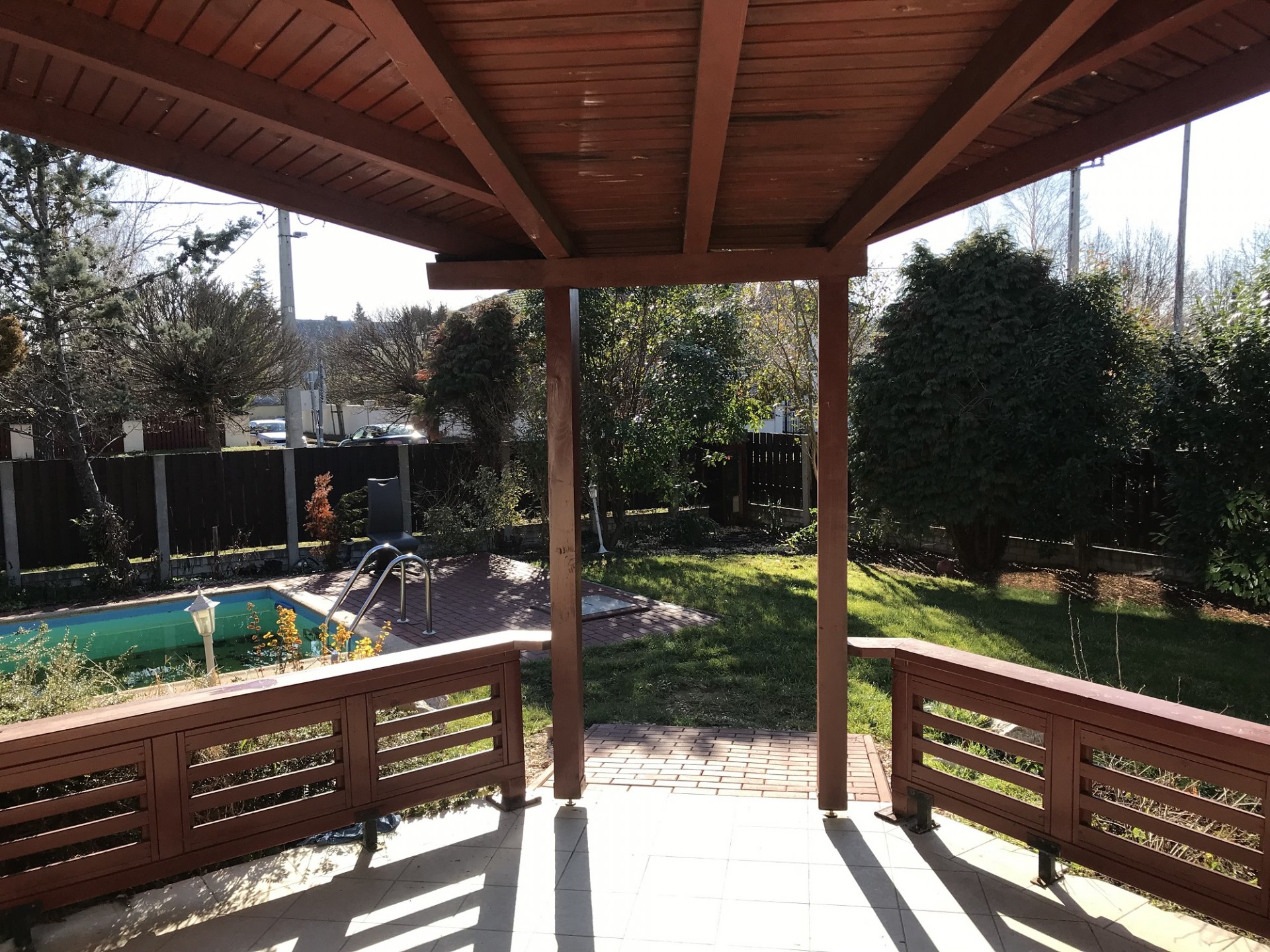 A nappaliból közvetlen teraszkapcsolattal rendelkezik, a fedett terasz 20m2 nagyságú.