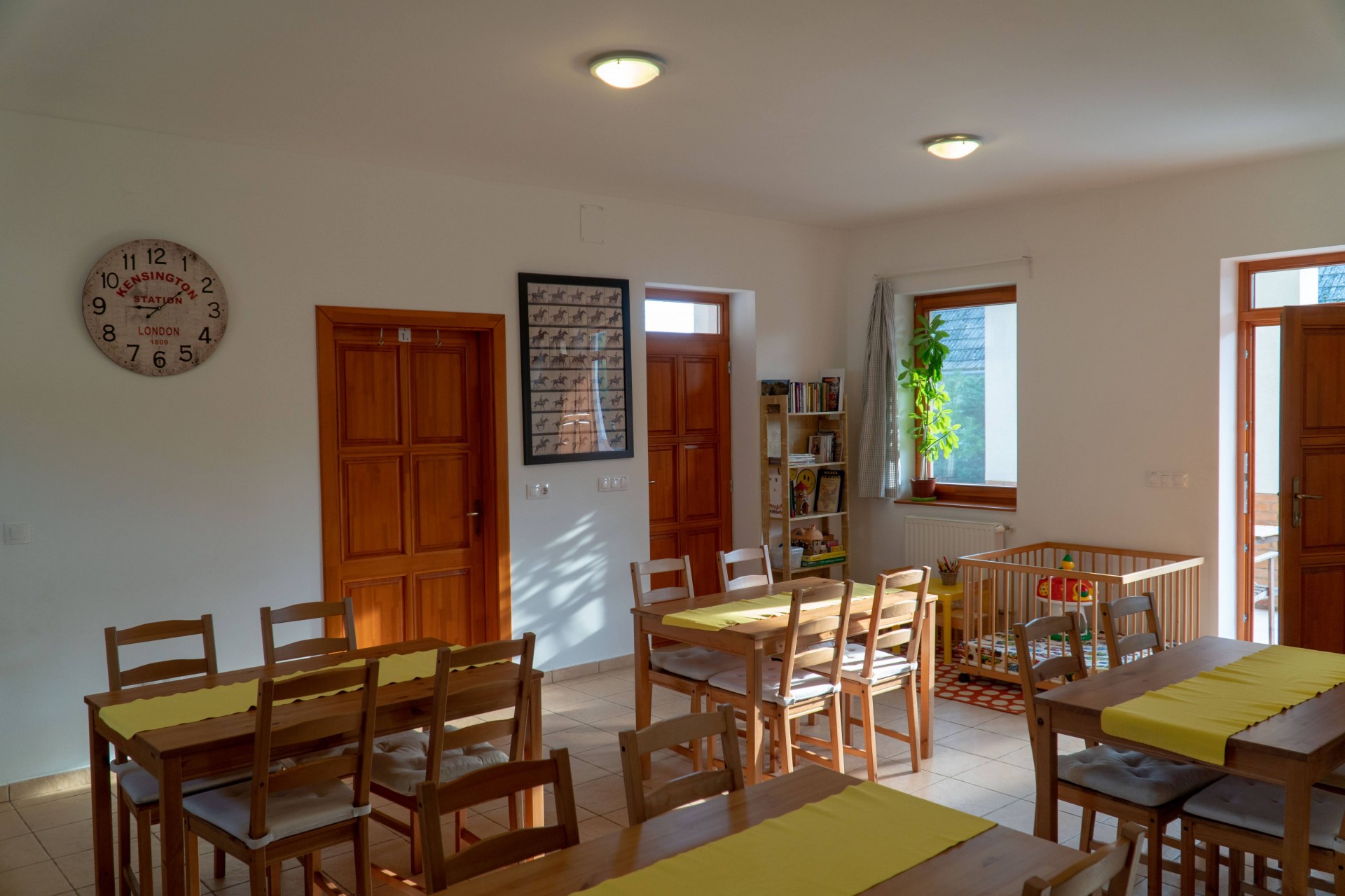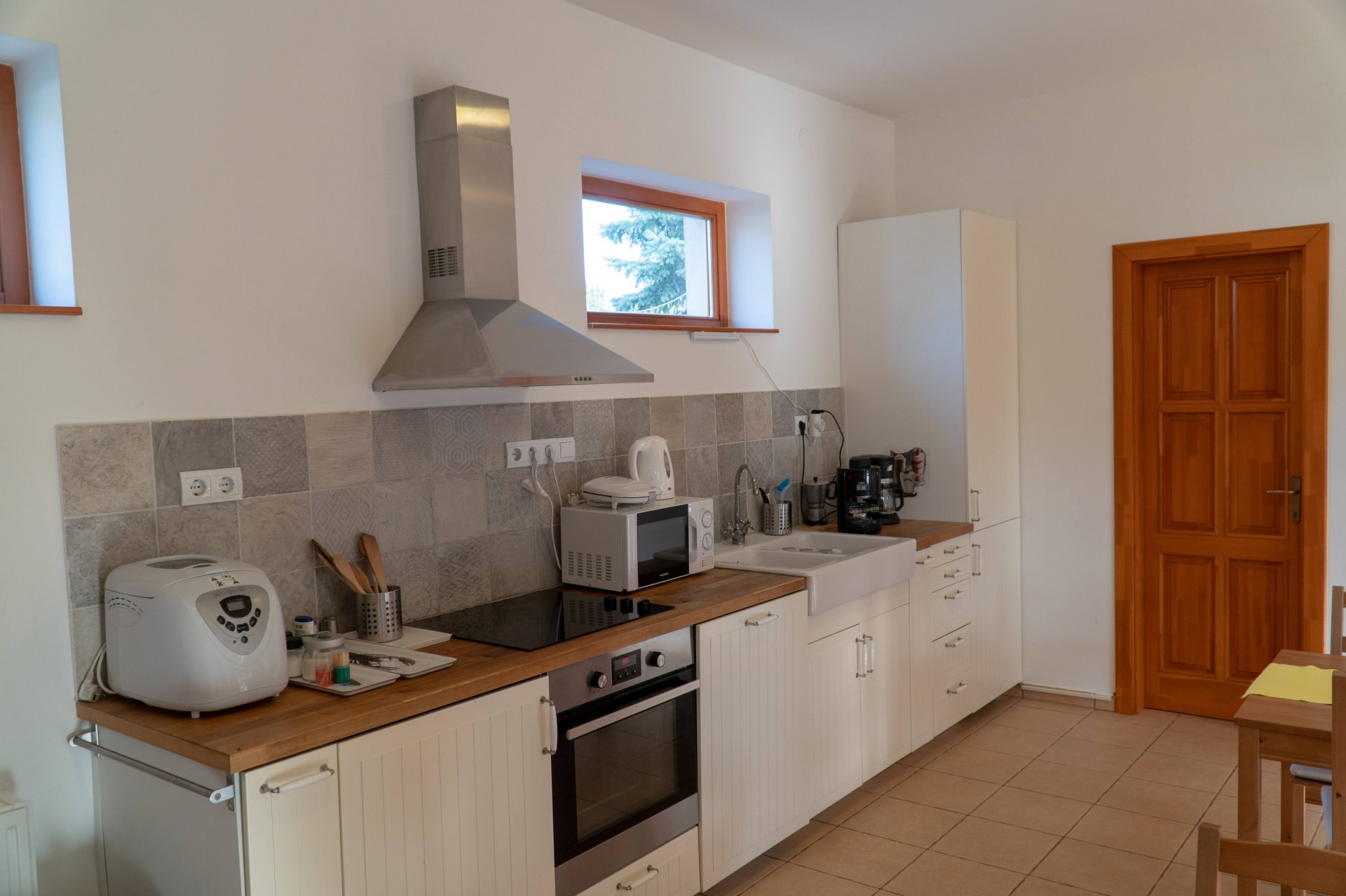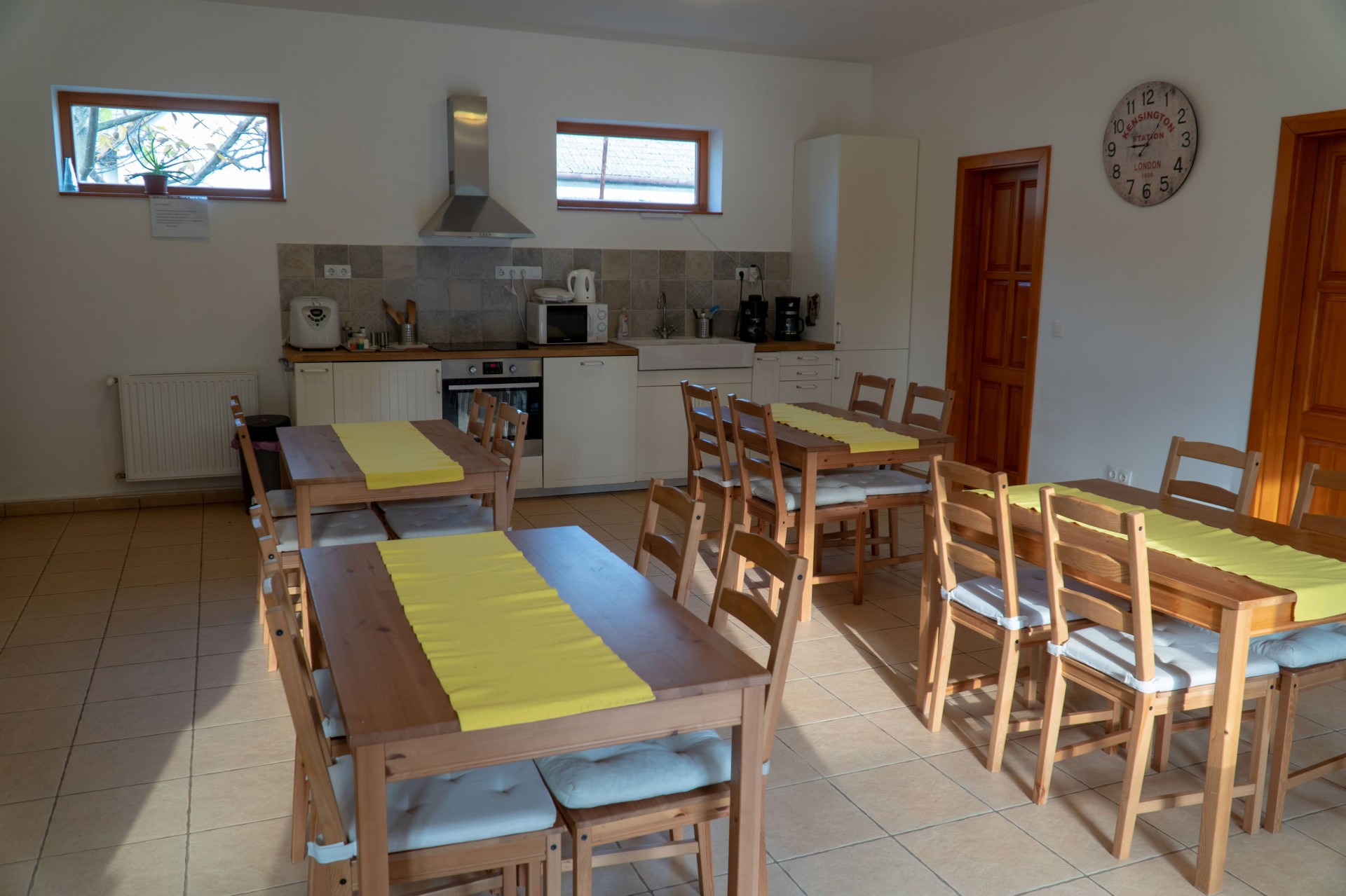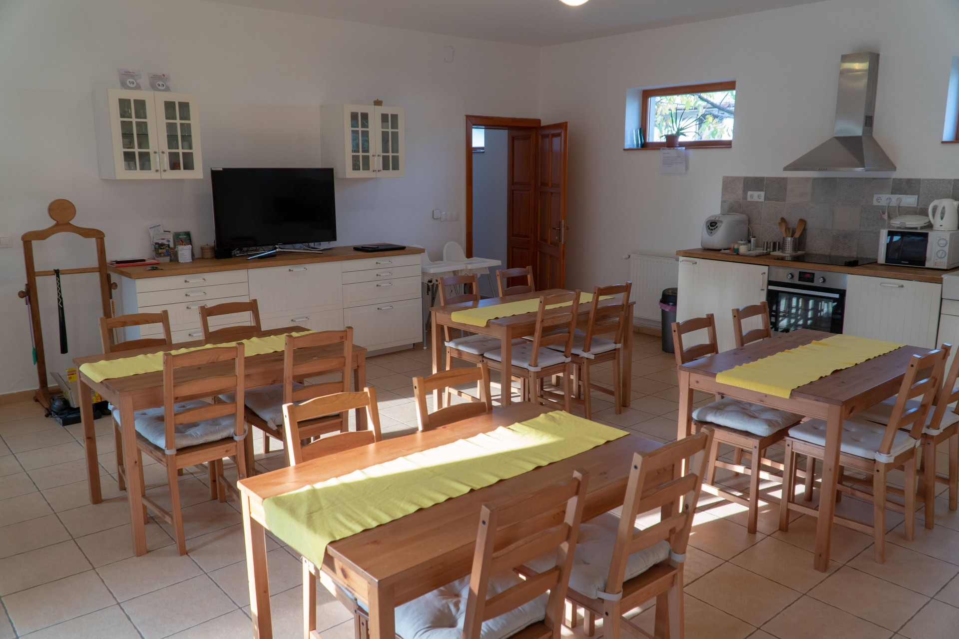 Tágas közösségi tér nagy, jól felszerelt konyhával és étkezővel