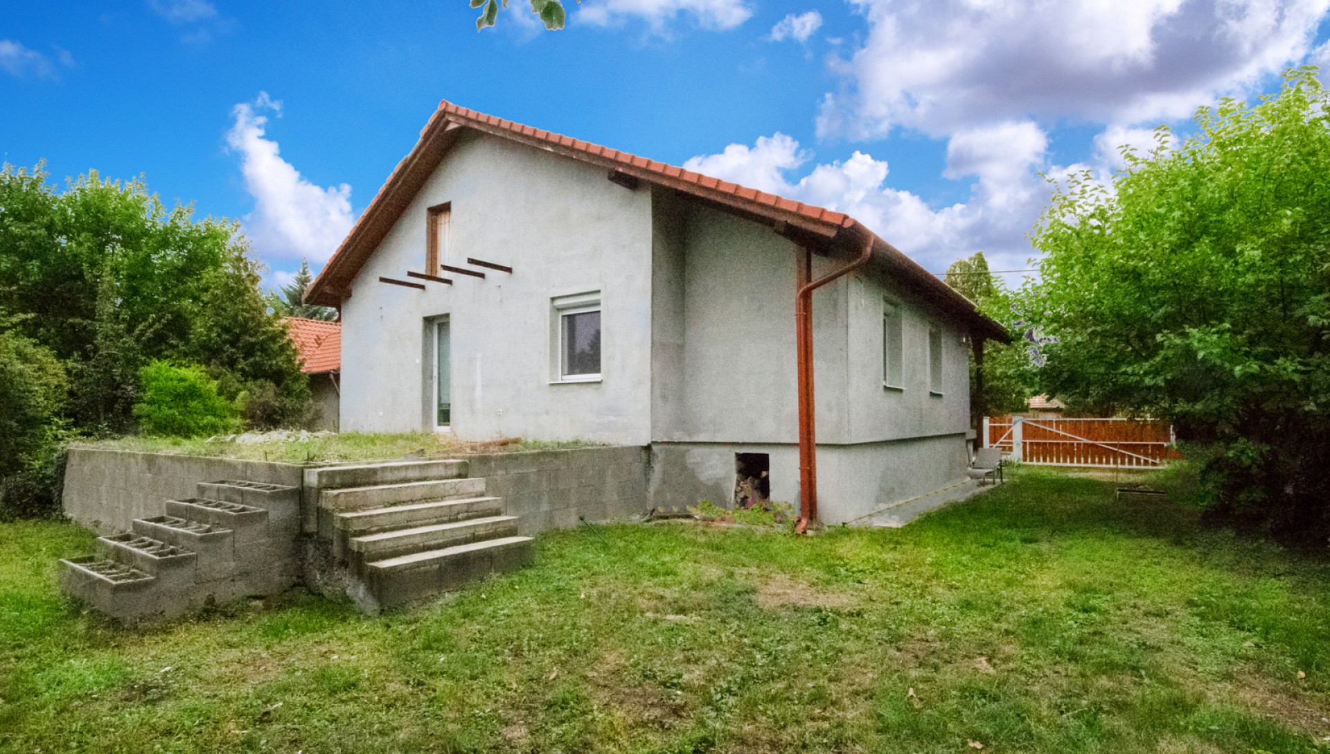 A ház külső részét és a kertet a leendő tulajdonos egyéni ízlése szerint alakíthatja ki.