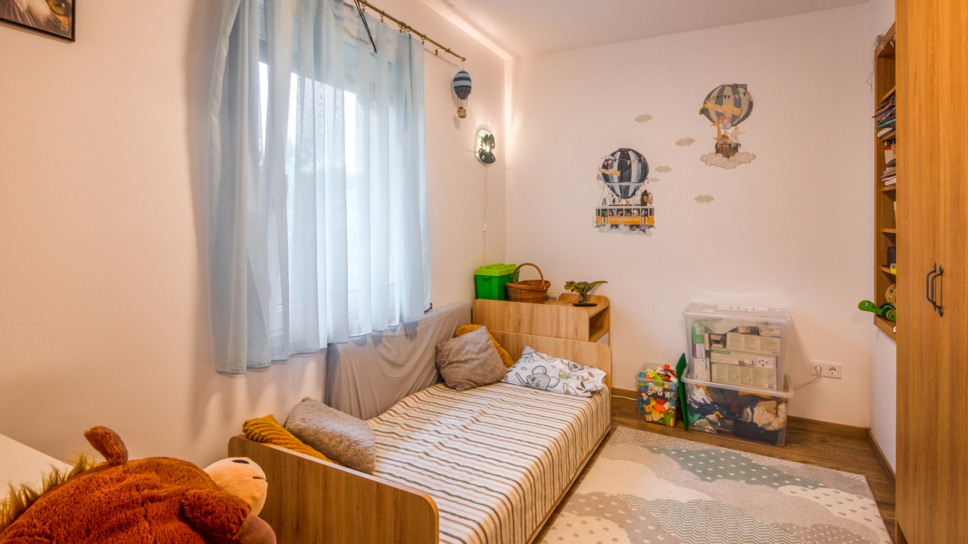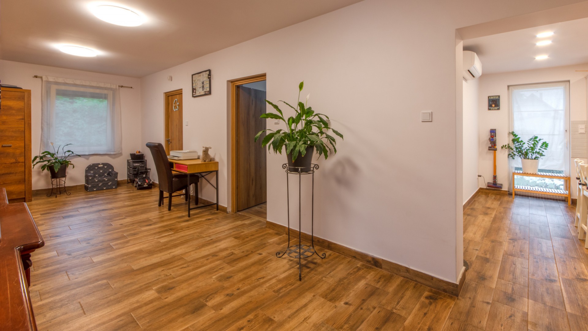 A ház jelenleg nappali + 2 szobás elrendezésű, de igény szerint nagyon könnyen nappali + 3 szobássá alakítható.