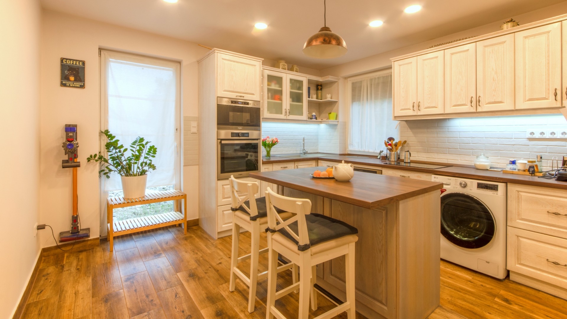 A lakók kényelméről és az alacsony rezsiről a hőszivattyús padlófűtés, a mennyezeti hűtő-fűtő rendszer és a beépített BWT vízlágyító rendszer gondoskodik. Az ár részét képezi a konyhában lévő, egyedi, bútorasztalos által készített konyhabútor a beépített Whirlpool gépekkel és a konyhaszigettel.