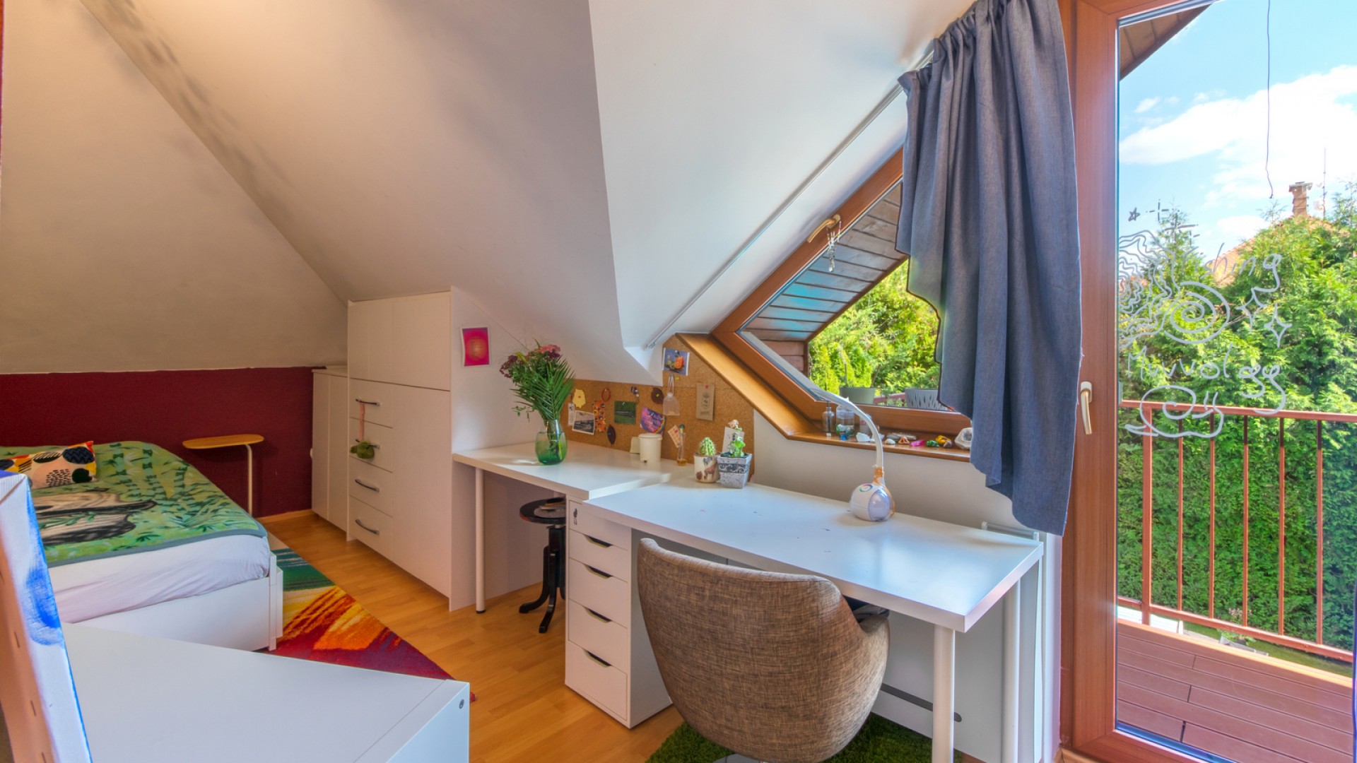 •Tetőtér (36,97 nm + erkély és padlástér): két napfényes gyerekszoba közös erkéllyel, fürdőszoba, mosókonyha és gardrób.