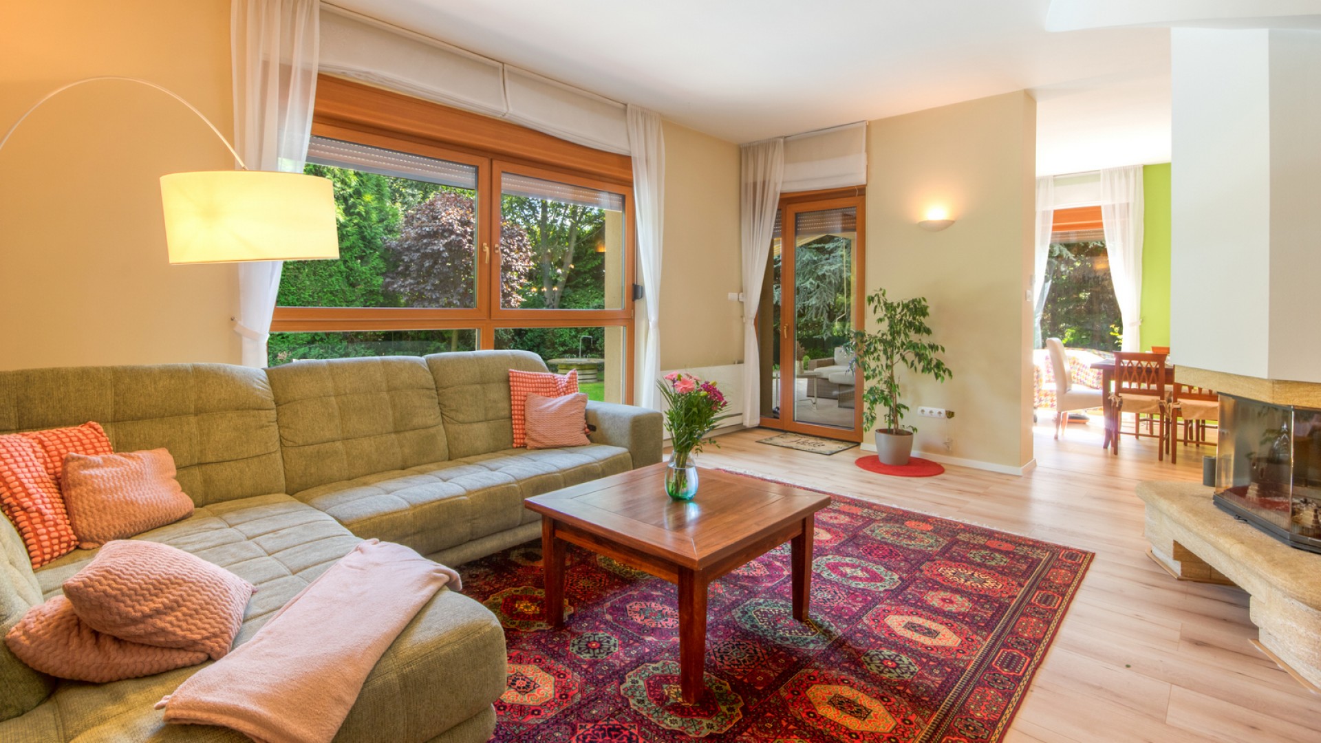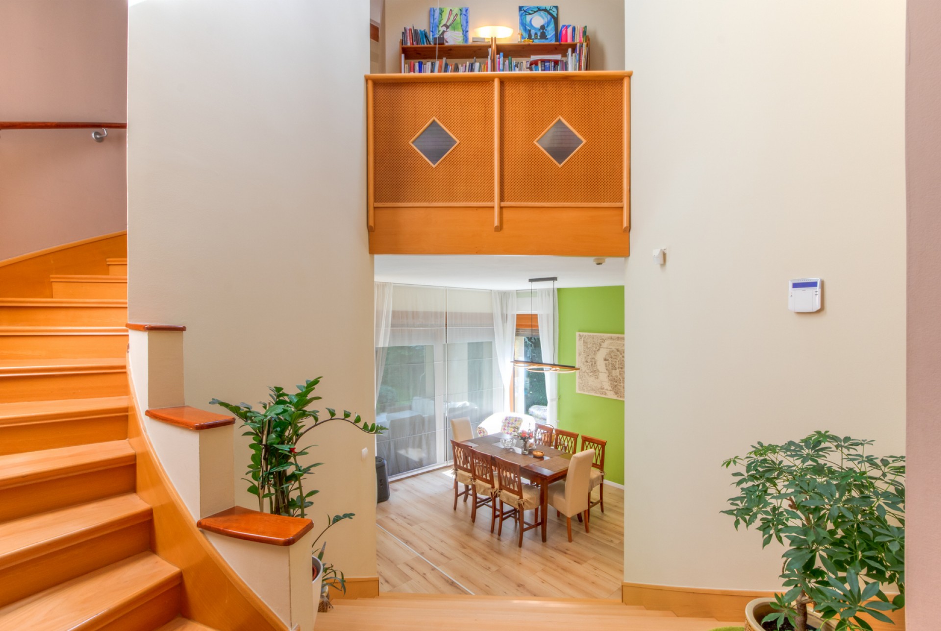 •Földszint (69,67 nm + terasz): előszoba, modern nyitott konyha (2024-ben teljesen felújítva), étkező és nappali kandallóval, nagy belmagassággal. Innen közvetlen kijárat nyílik a teraszra és a kertbe.