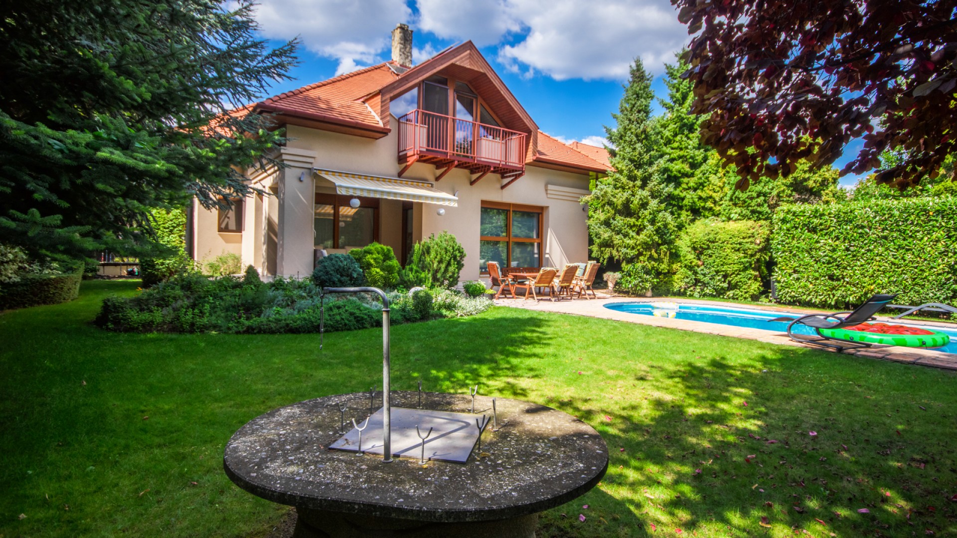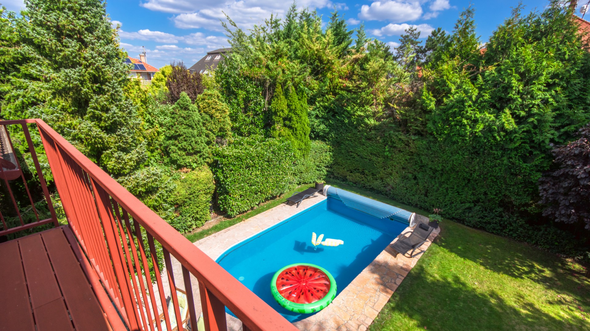 •Medence: 32 nm-es (40 m³), távirányítós rolóval zárható, automata vegyszeradagolóval és külön hőszivattyús fűtéssel.