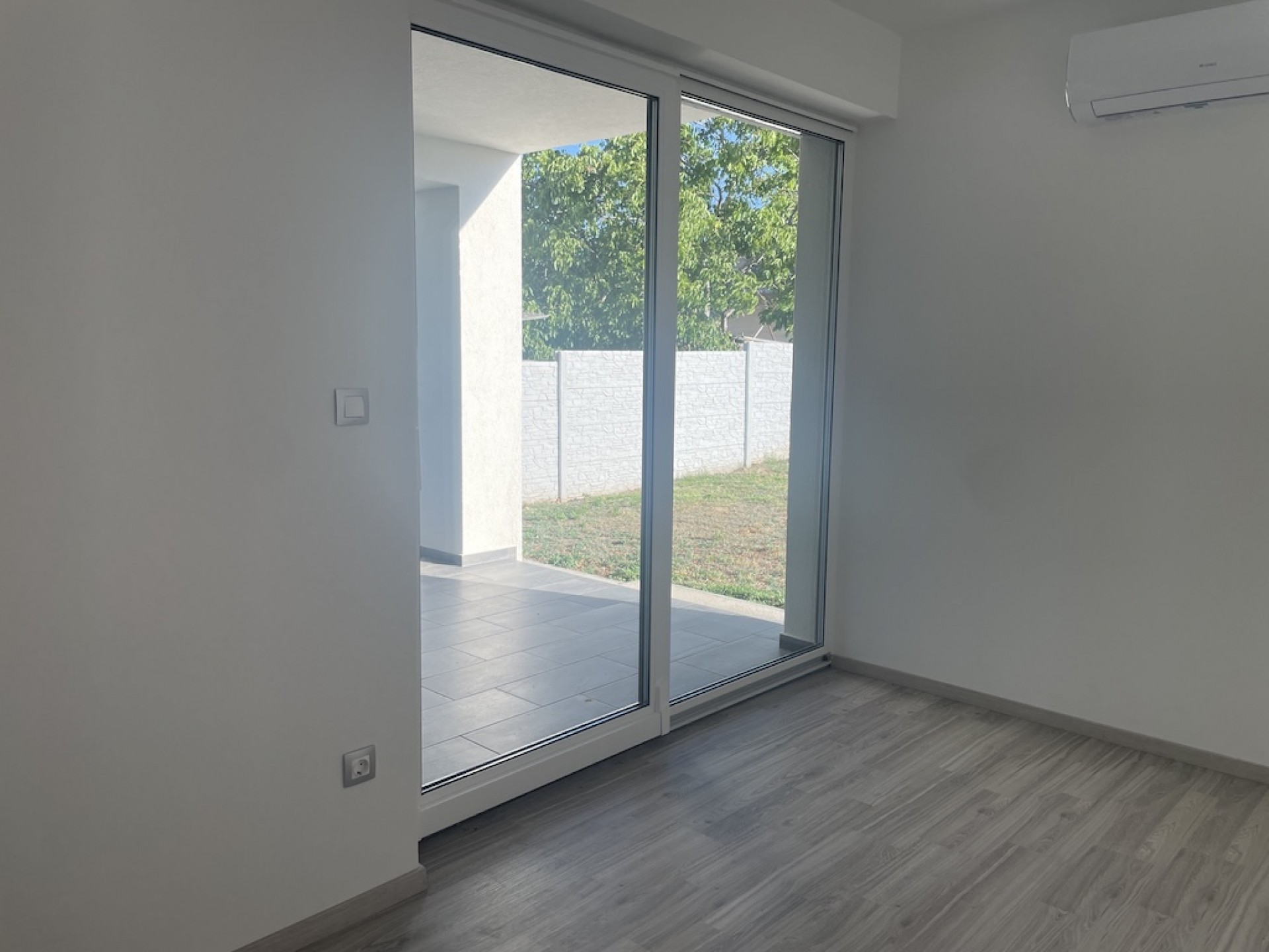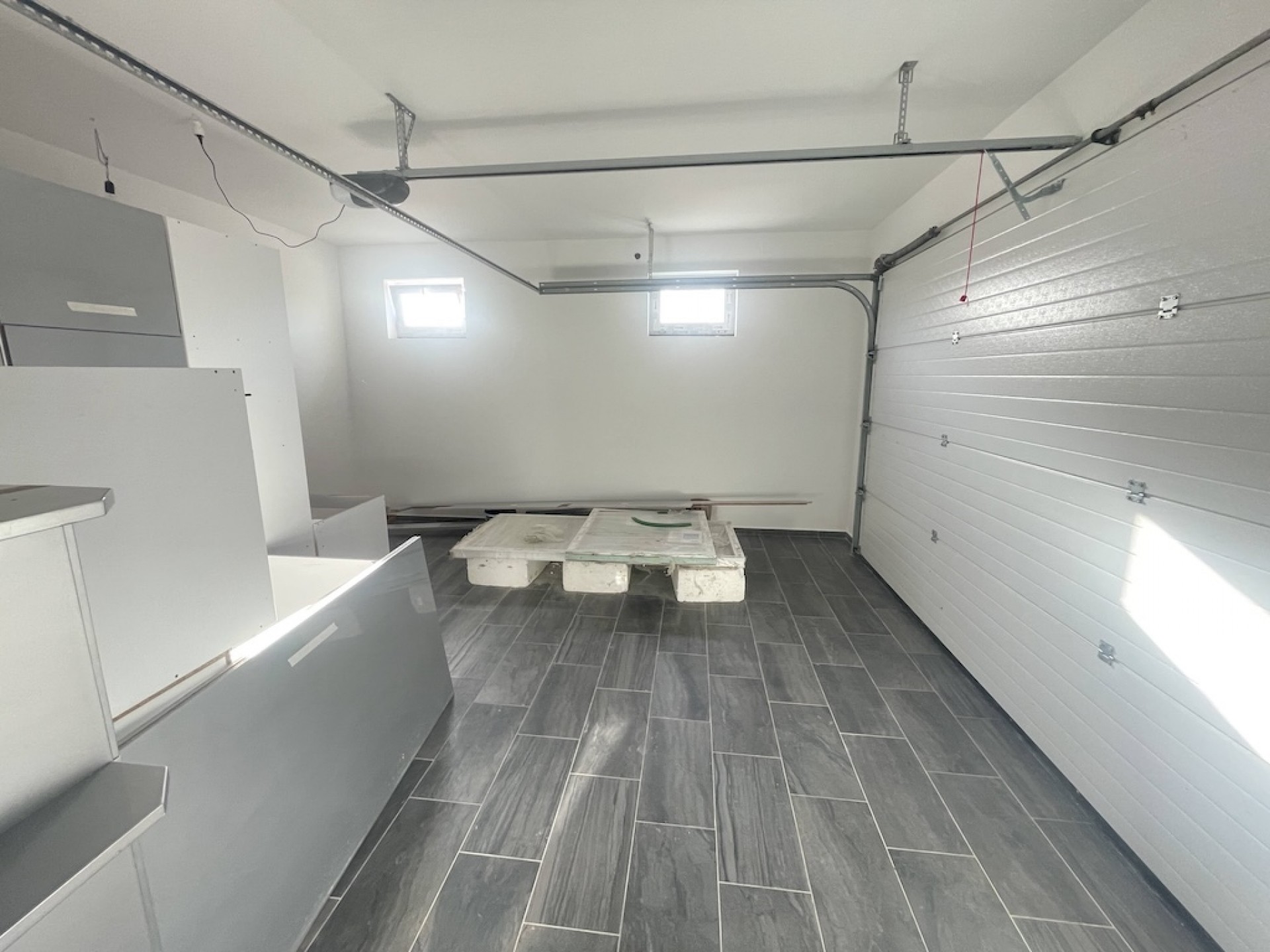 Kétállásos garázs (29,7 m2), tornác, 27 m2-es terasz