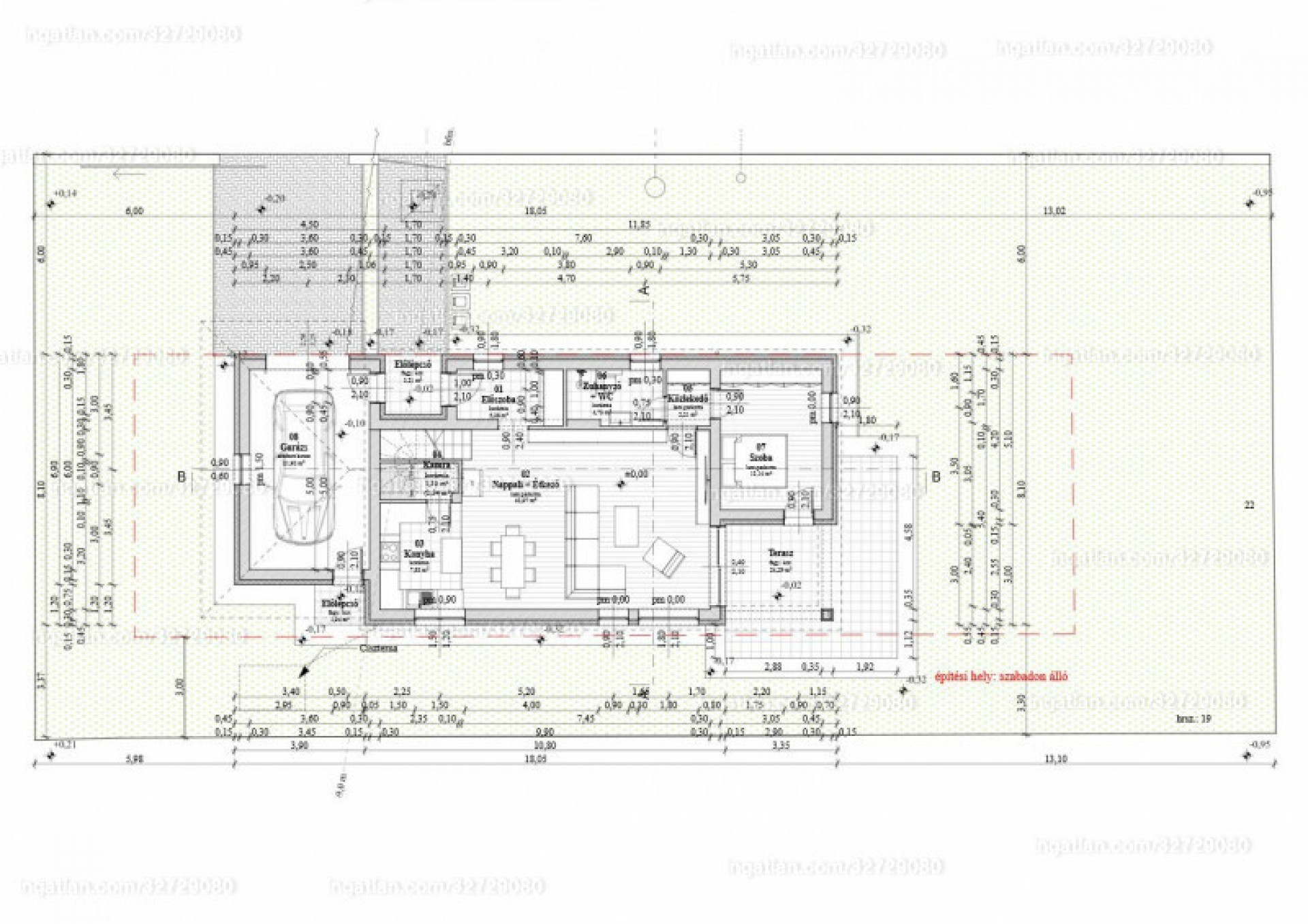Extrák: elektromos kis- és nagykapu, motoros garázskapu, kaputelefon, riasztórendszer előkészítés, klíma a nappaliban, a szobákban előkészítve, elektromos redőny, termőföldterítés, falazott kerítés.
