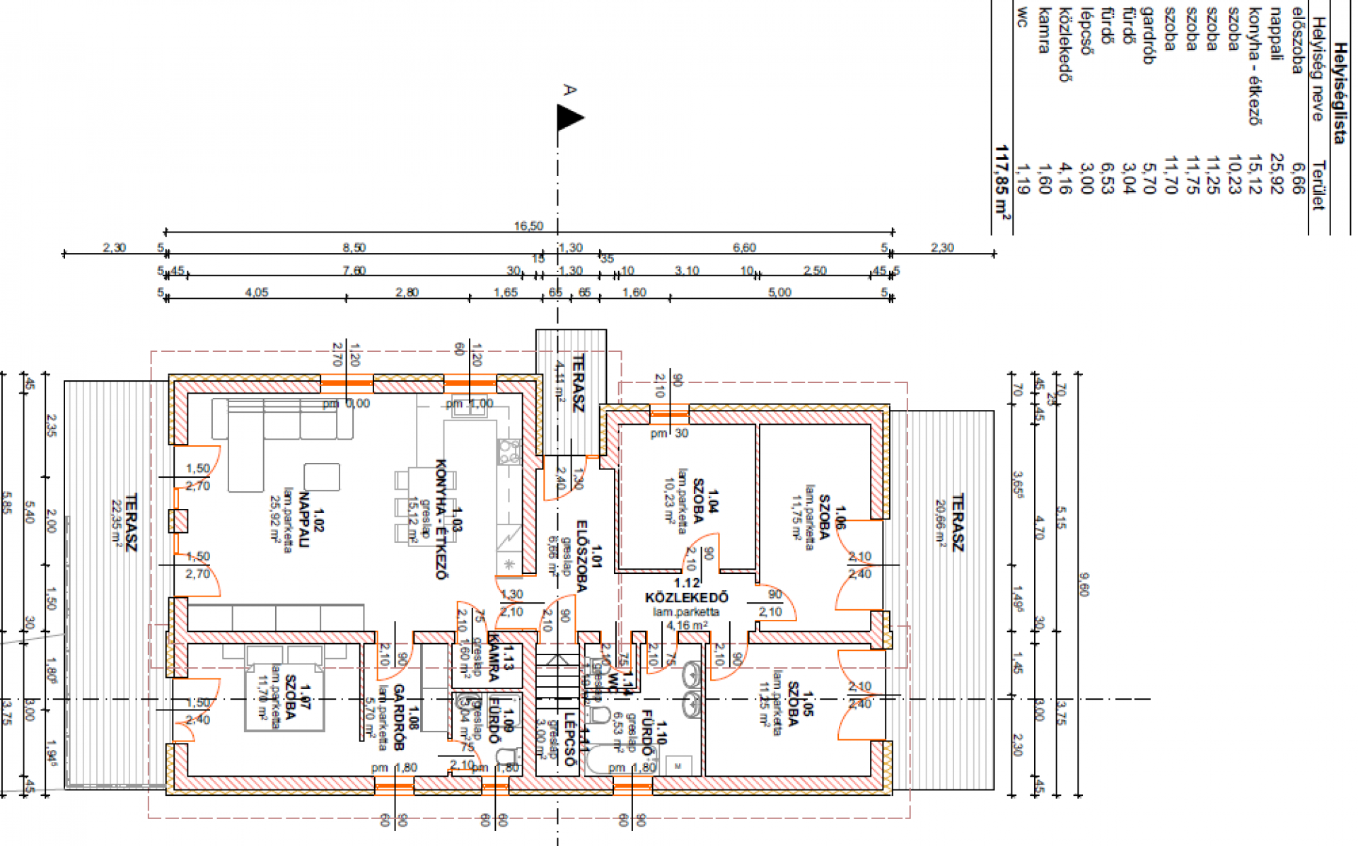 + teraszok: 41,11 + 20,66 + 25,35 m2