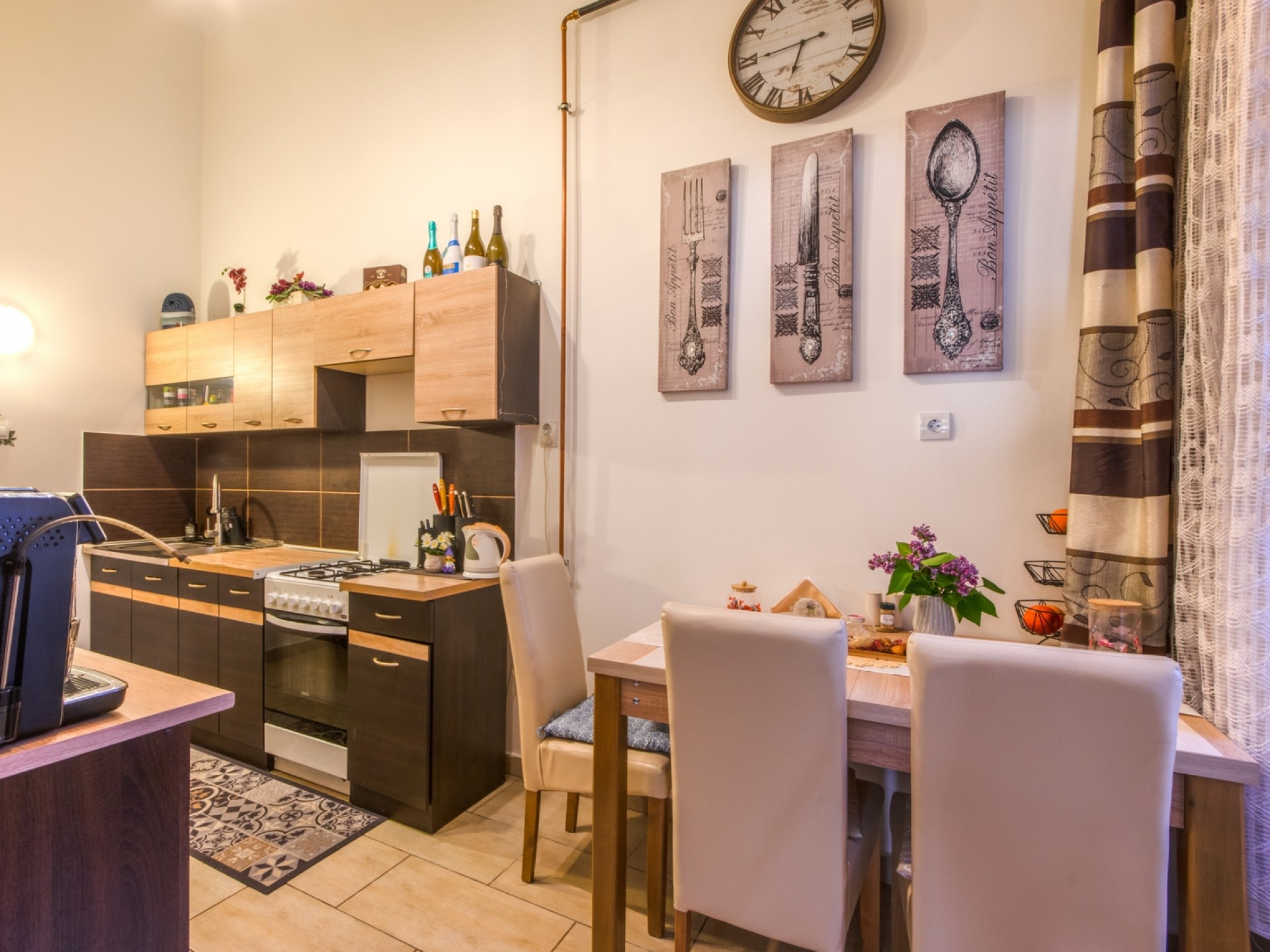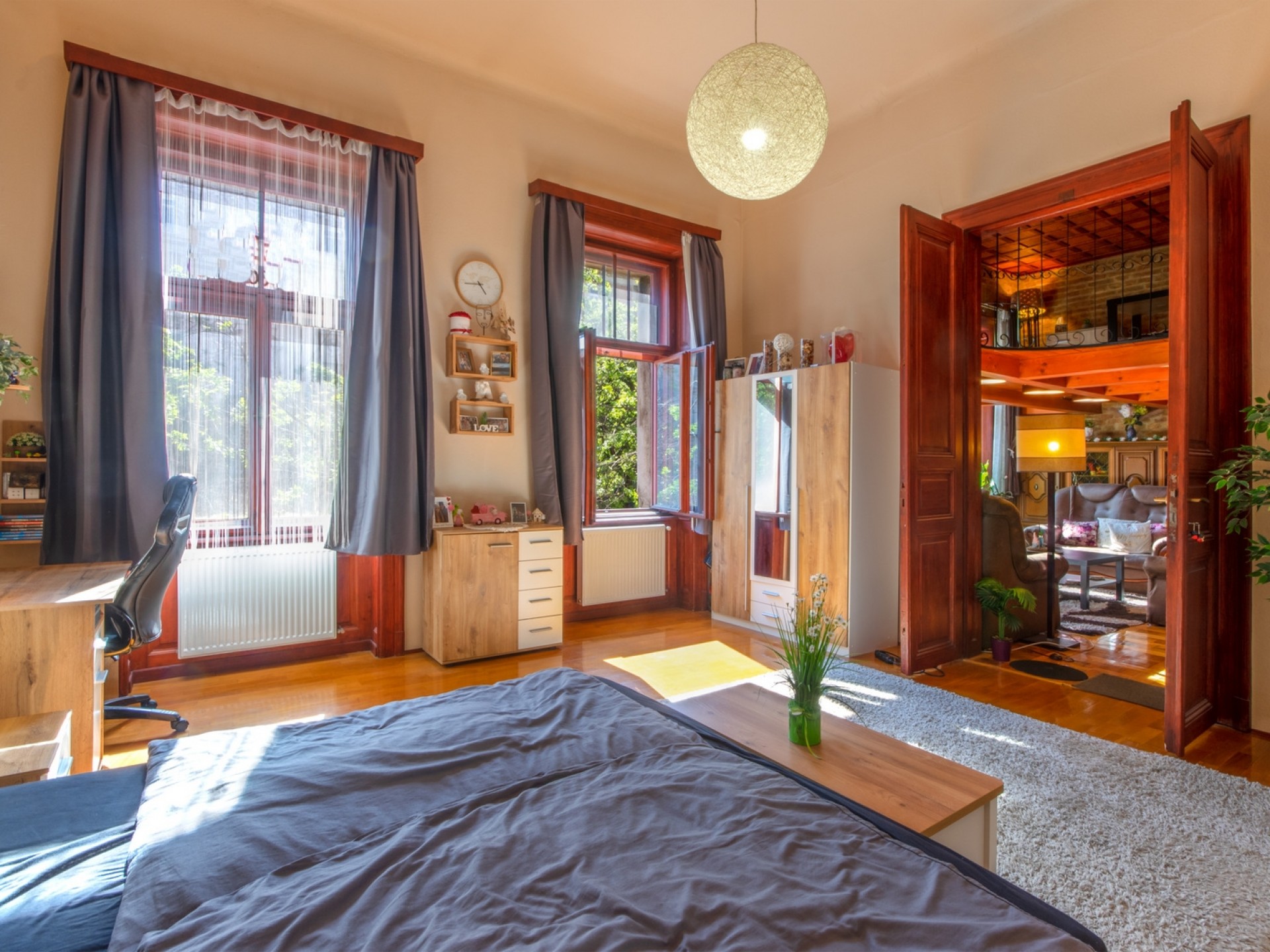 A lakás nappali + 2 hálószobás, ideális elosztású, és különlegessége az elegáns, ónémet/osztrák stílusú berendezés, amely igazi nagypolgári hangulatot teremt. A magas belmagasság, a tágas terek és az egyedi részletek különleges atmoszférát biztosítanak.