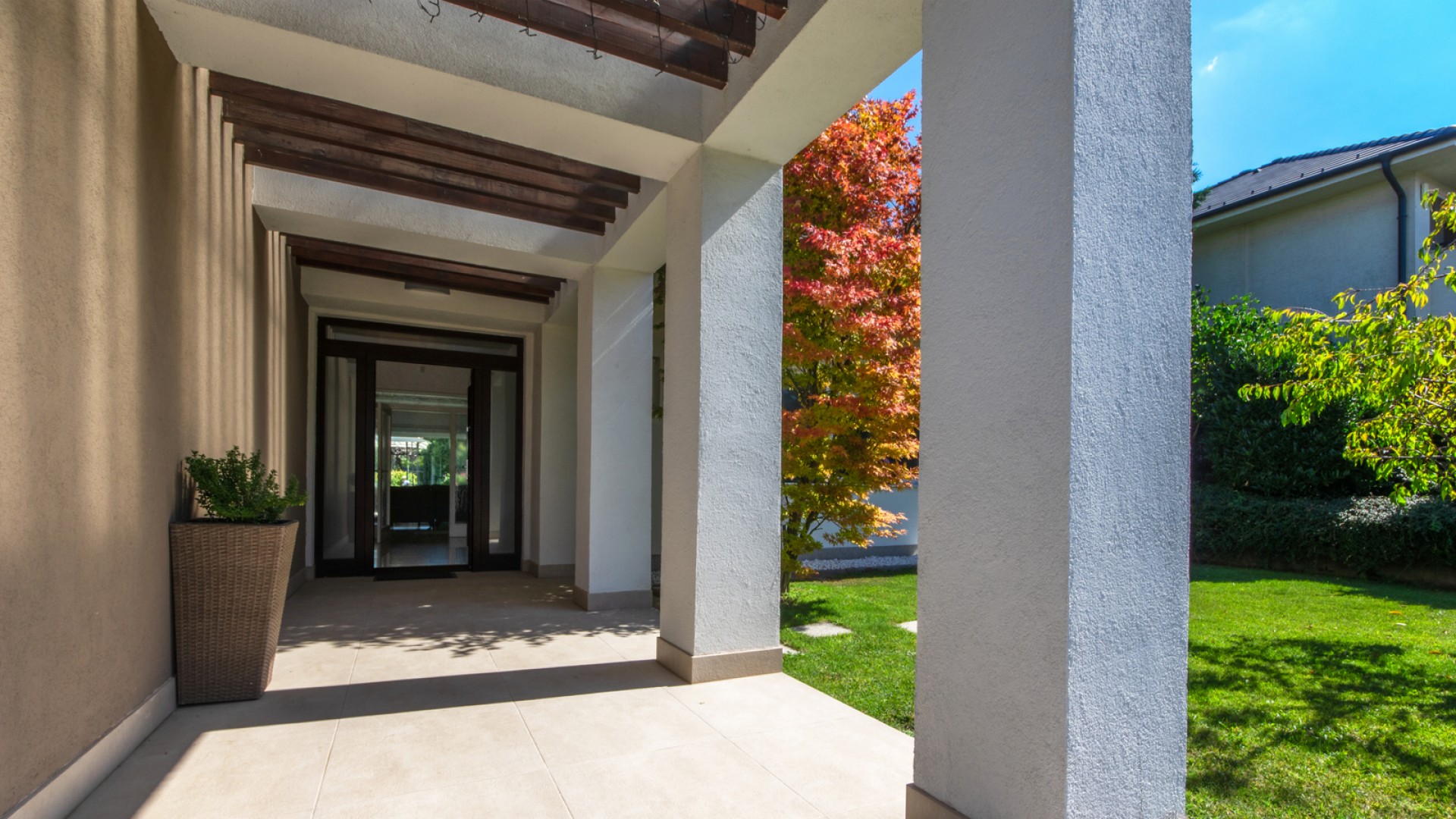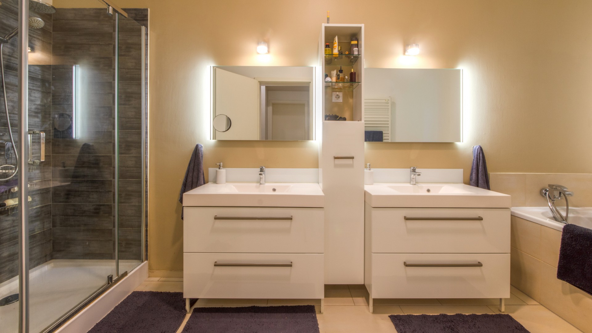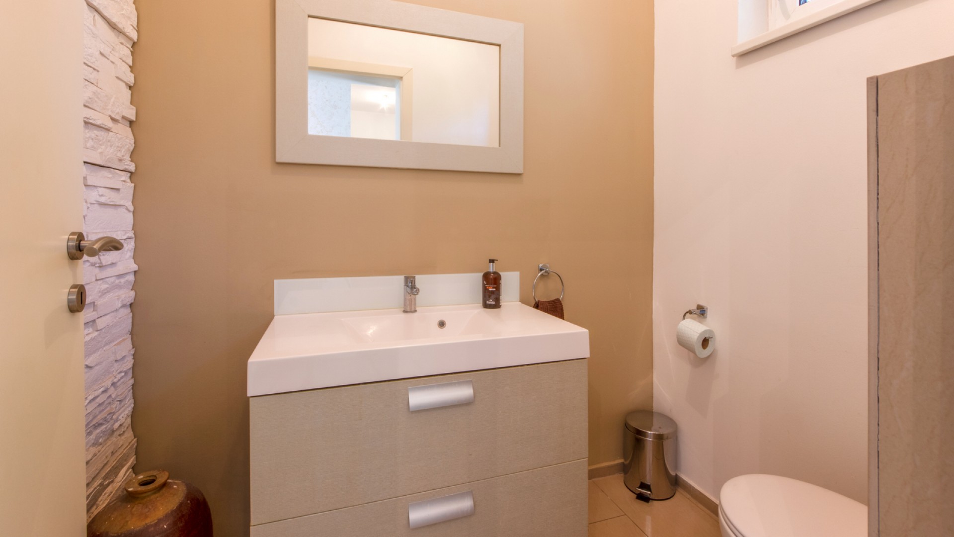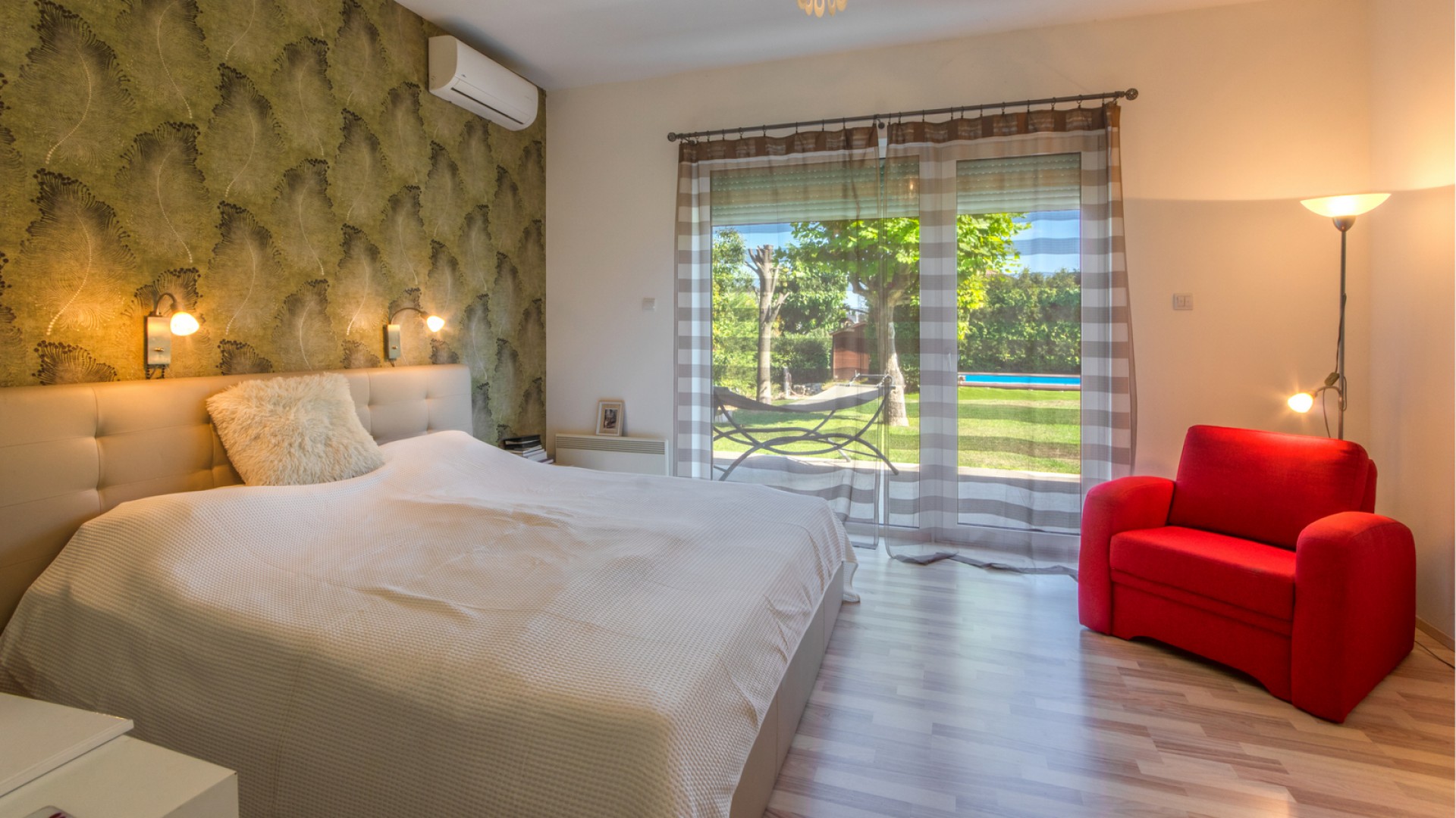 A modern, minőségi anyagokból épült, alternatív házban 2 nappali található, 4 háló szoba, 2 gardrób, 2 fürdőszoba és 2 plusz WC külön.