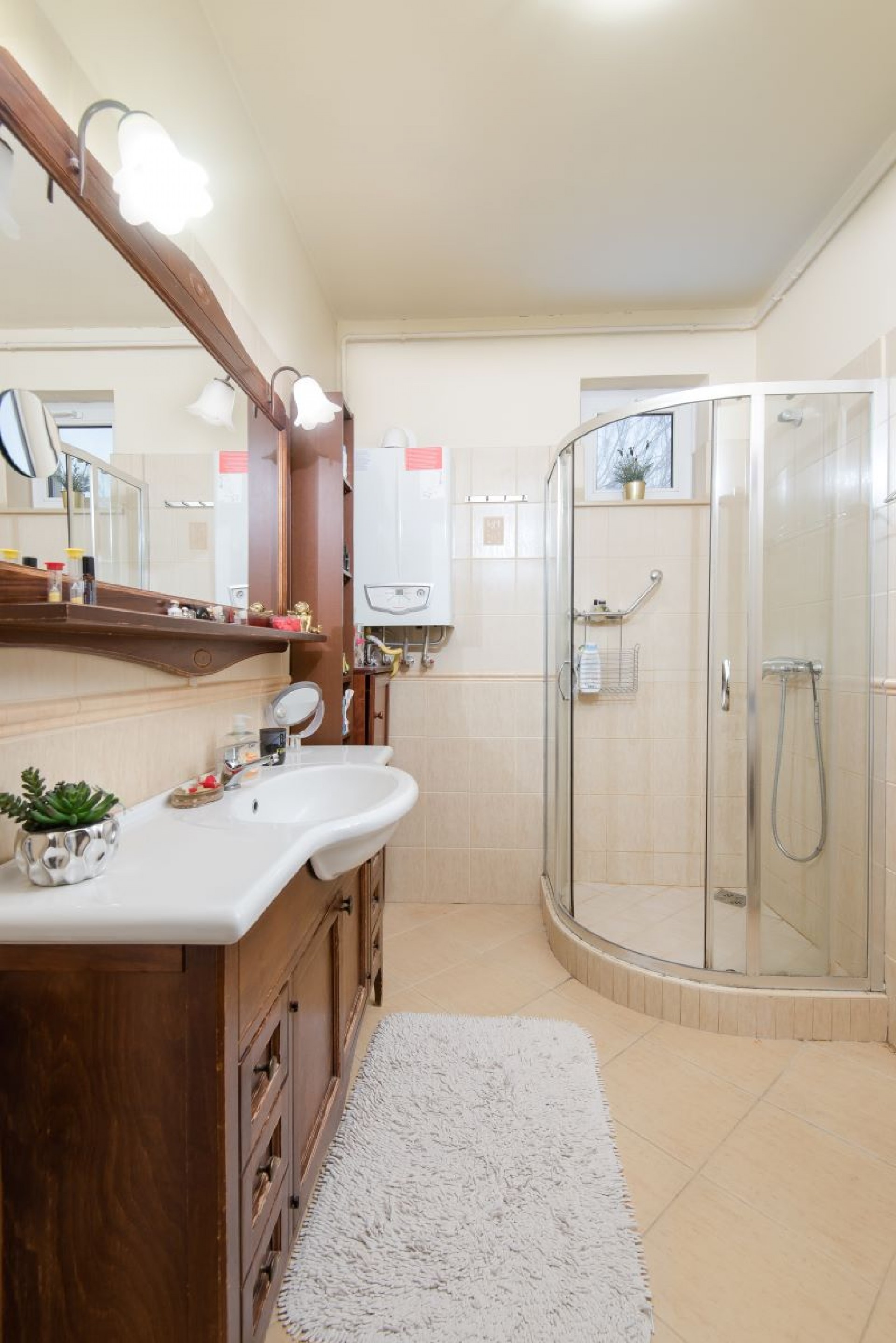 A fürdõszoba zuhanyzós, a WC külön helyiségben van.