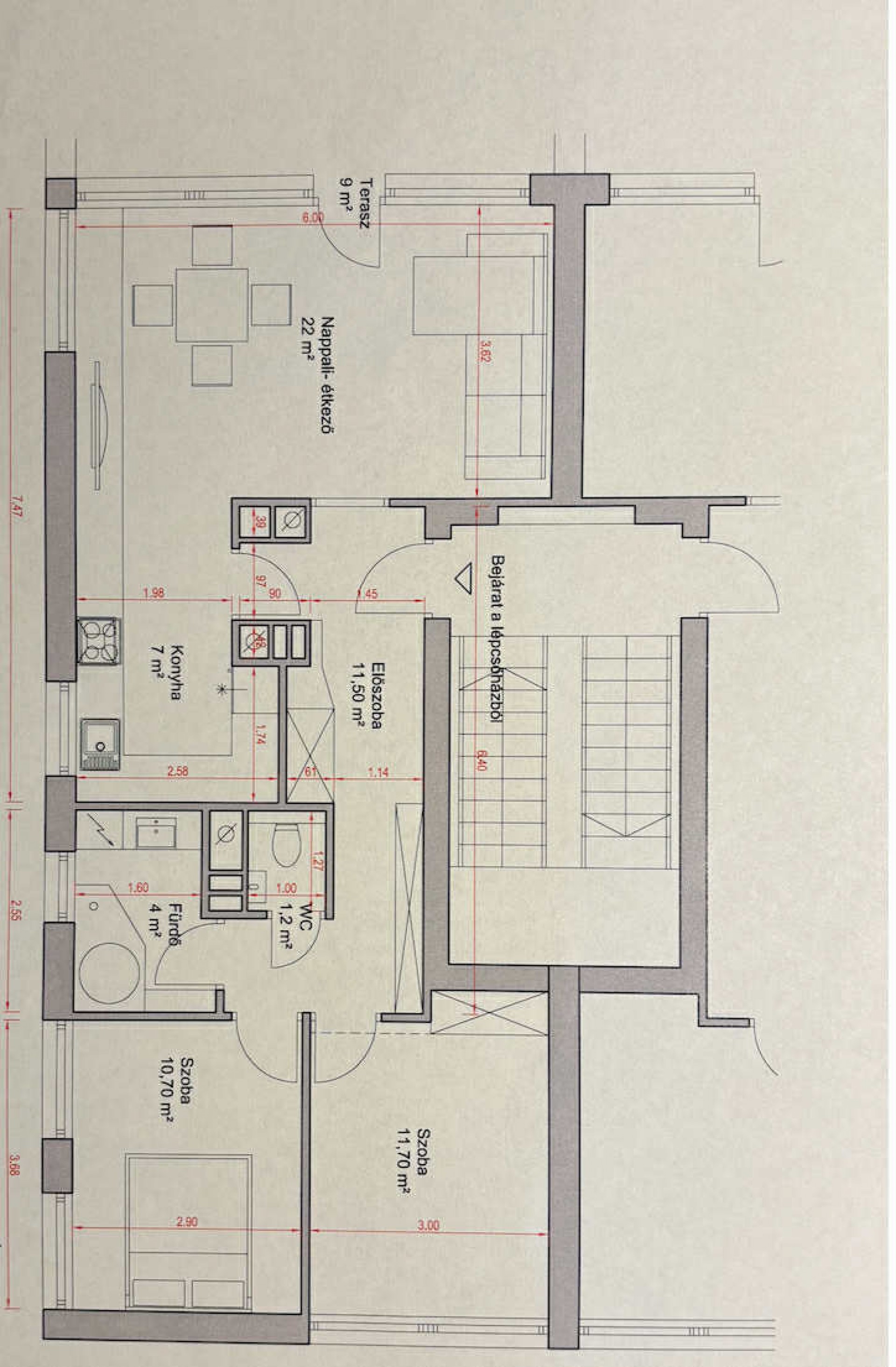 • 69 nm: tágas nappali + 2 külön nyíló hálószoba