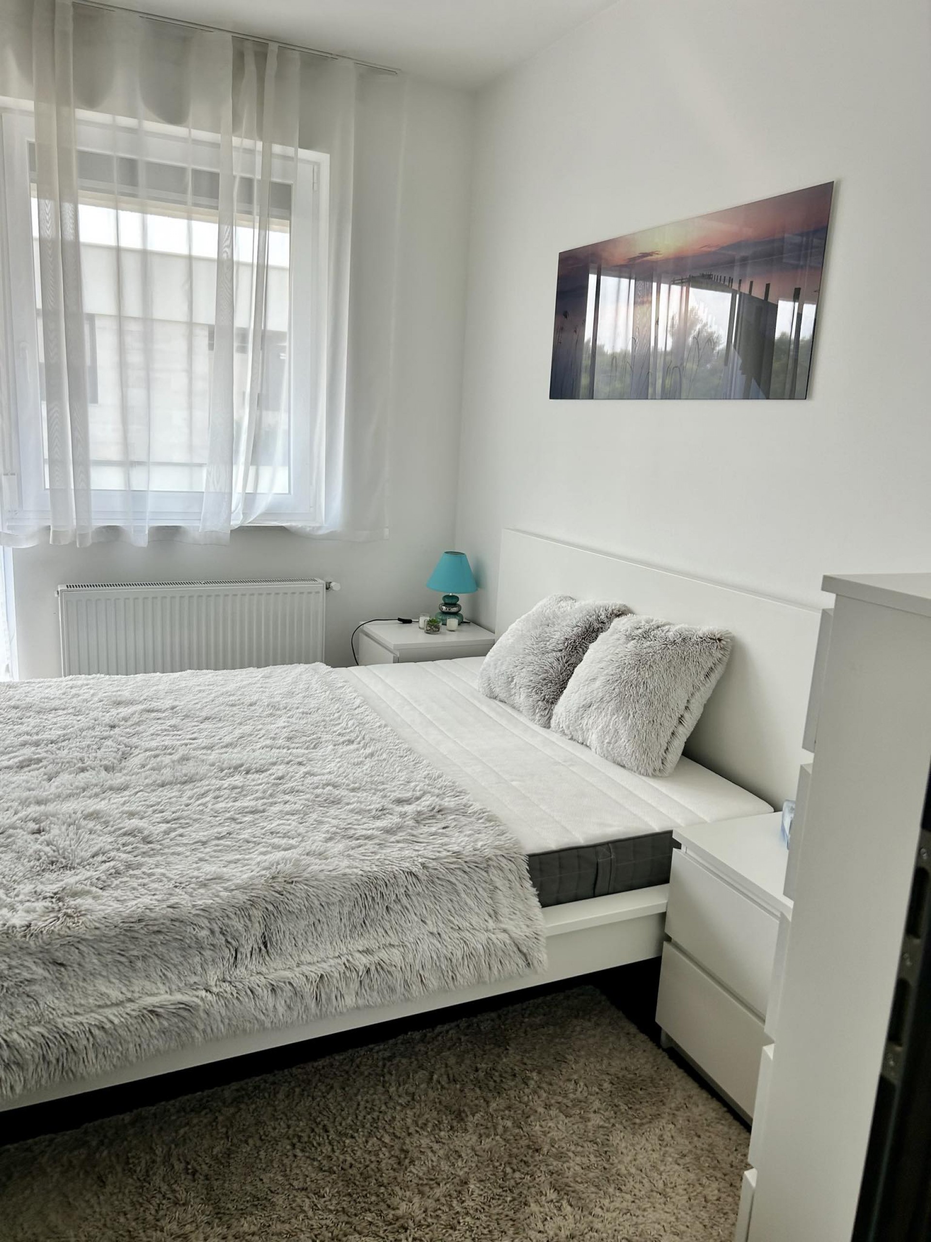 Az emeleten 2 nagyobb méretű hálószoba mellett van egy kisebb, ami jelenleg gardróbként van berendezve. Ezen a szinten van külön WC és kádas fürdőszoba is. Beépített bútorokkal, konyha teljesen gépesítetten kiadó.