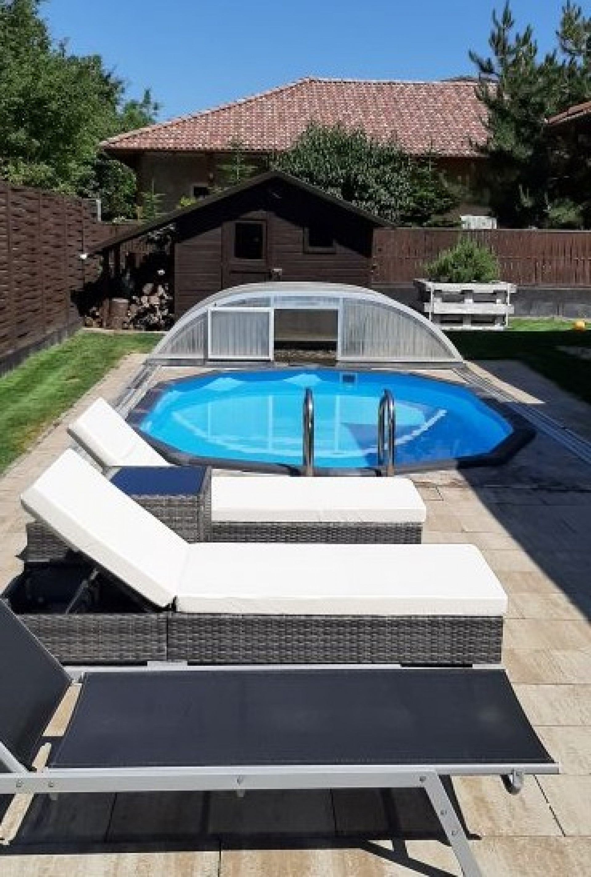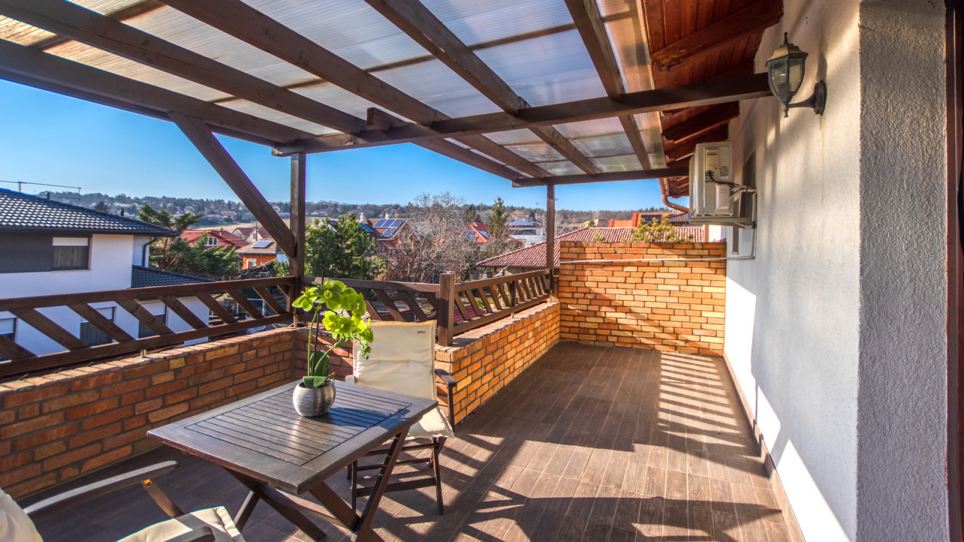 - A ház külső adottságai: Az ingatlan 2008-ban épült, 208 nm nettó alapterülettel rendelkezik. A ház elegáns, időtálló stílusa és kiváló minőségű anyaghasználata az első pillanattól kezdve lenyűgözi az érkezőket. A gondosan ápolt kertben egy privát medence és egy tágas terasz biztosítja a pihenés lehetőségét. Az udvar parkosított, a növényzet átgondoltan megtervezett, így biztosítva a maximális intimitást. A ház nyugati tájolású, amelynek köszönhetően egész nap természetes fényben úszik.