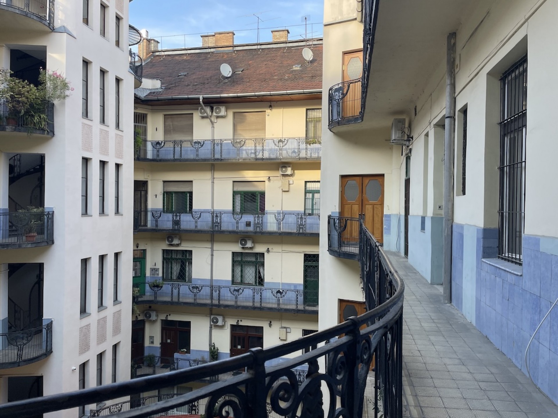 A társasház rendezett, csendes, jó lakóközösséggel rendelkezik – a belváros nyüzsgése mégis csak pár lépésre van.