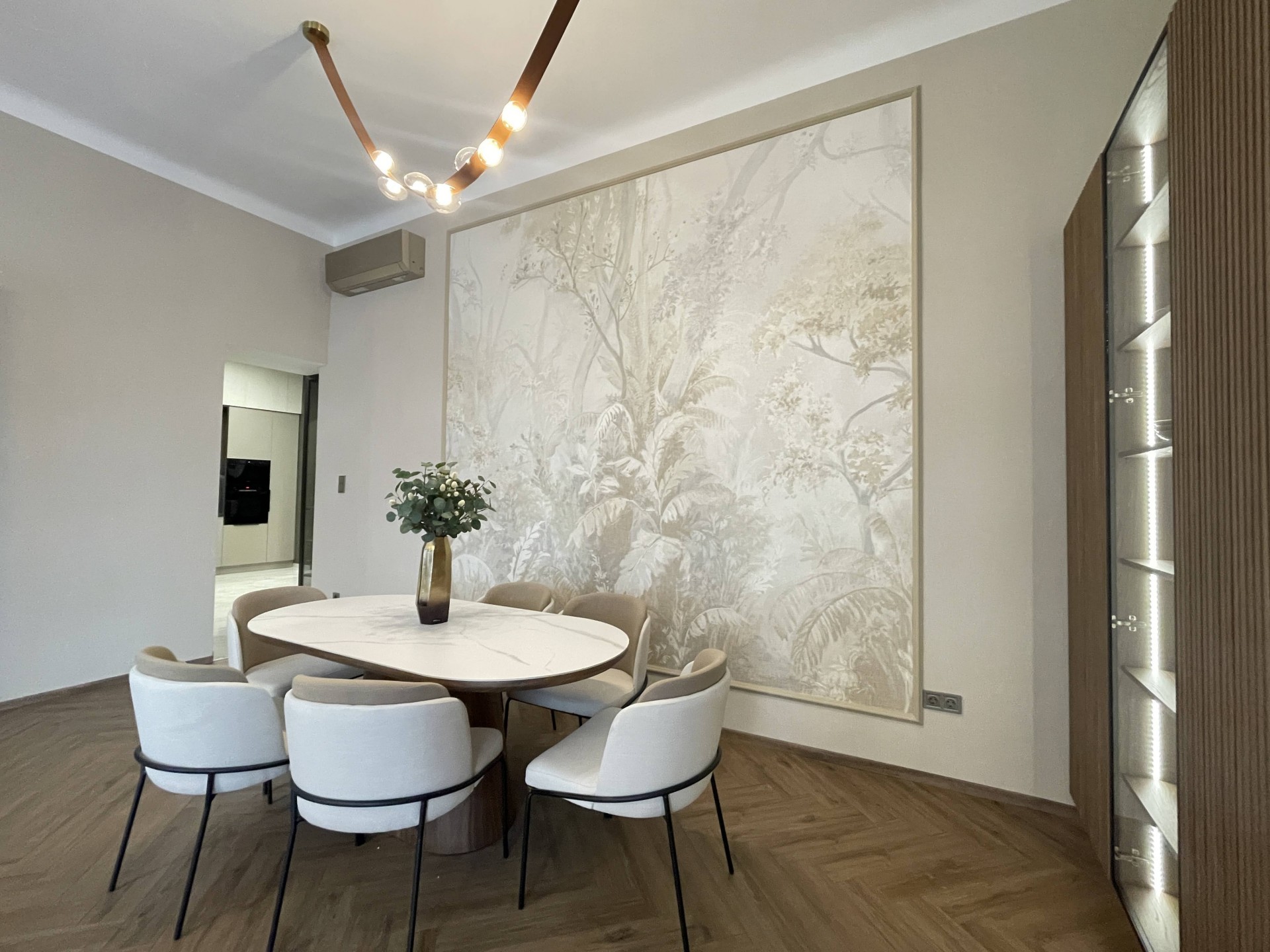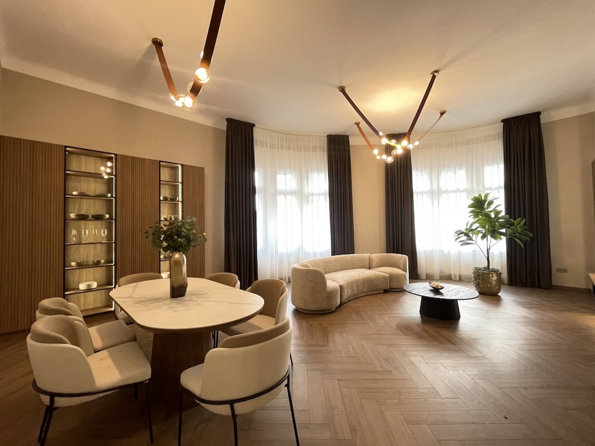 A lakás elegáns belső tereit a 3,80 m-es belmagasság, a tágas elosztás és a gondosan megválasztott, prémium minőségű anyagok teszik igazán különlegessé.