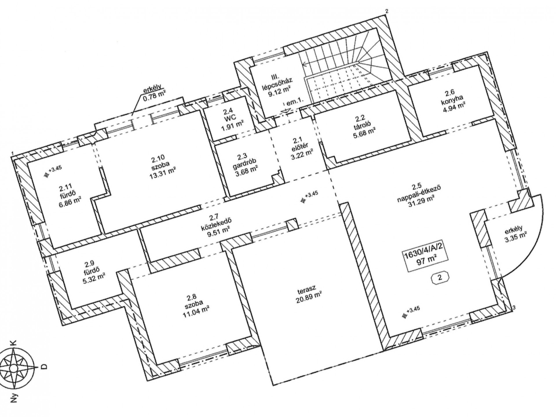 Kétlakásos társasház FELSŐ SZINTJÉN 109 nm-es I. emeleti, nagy teraszos, nappali + 2 hálószobás + 2 fürdőszobás lakás eladó.