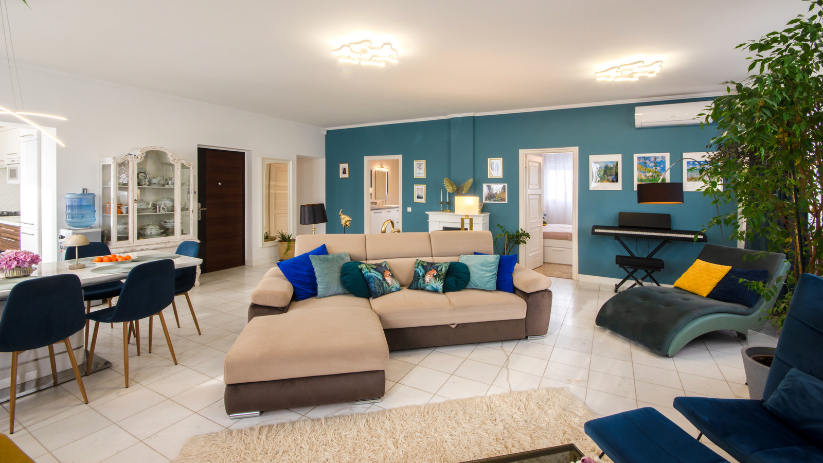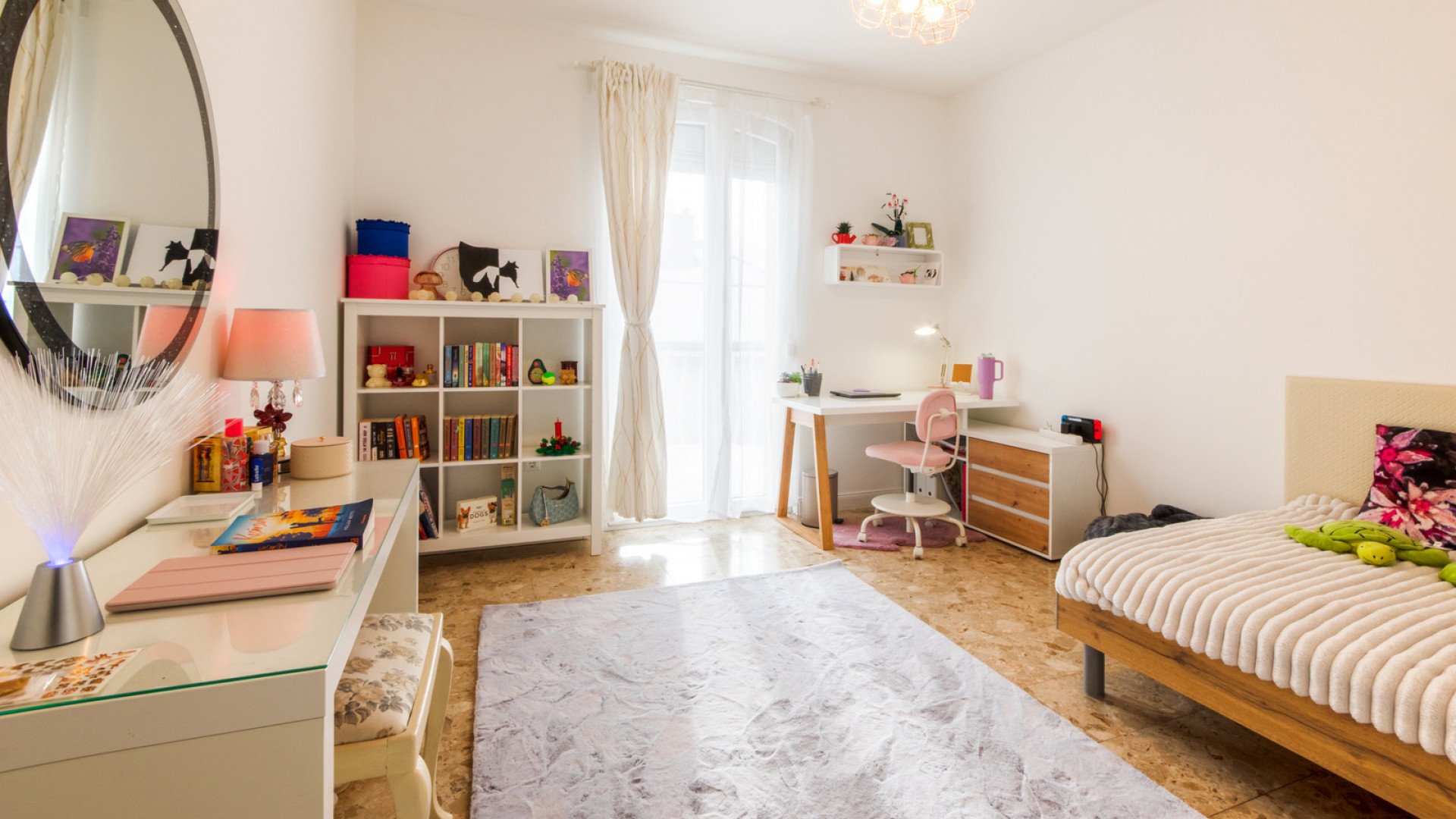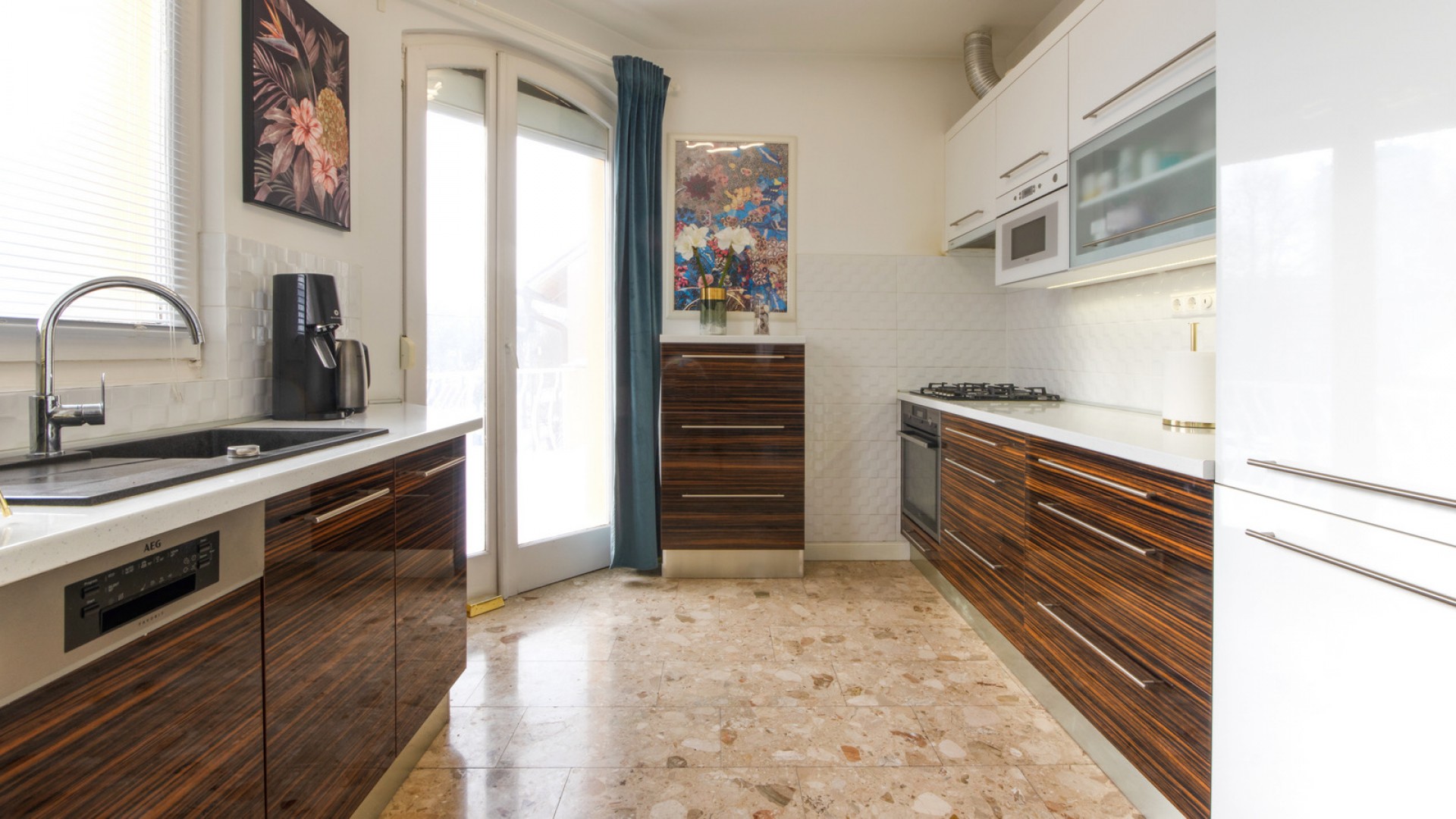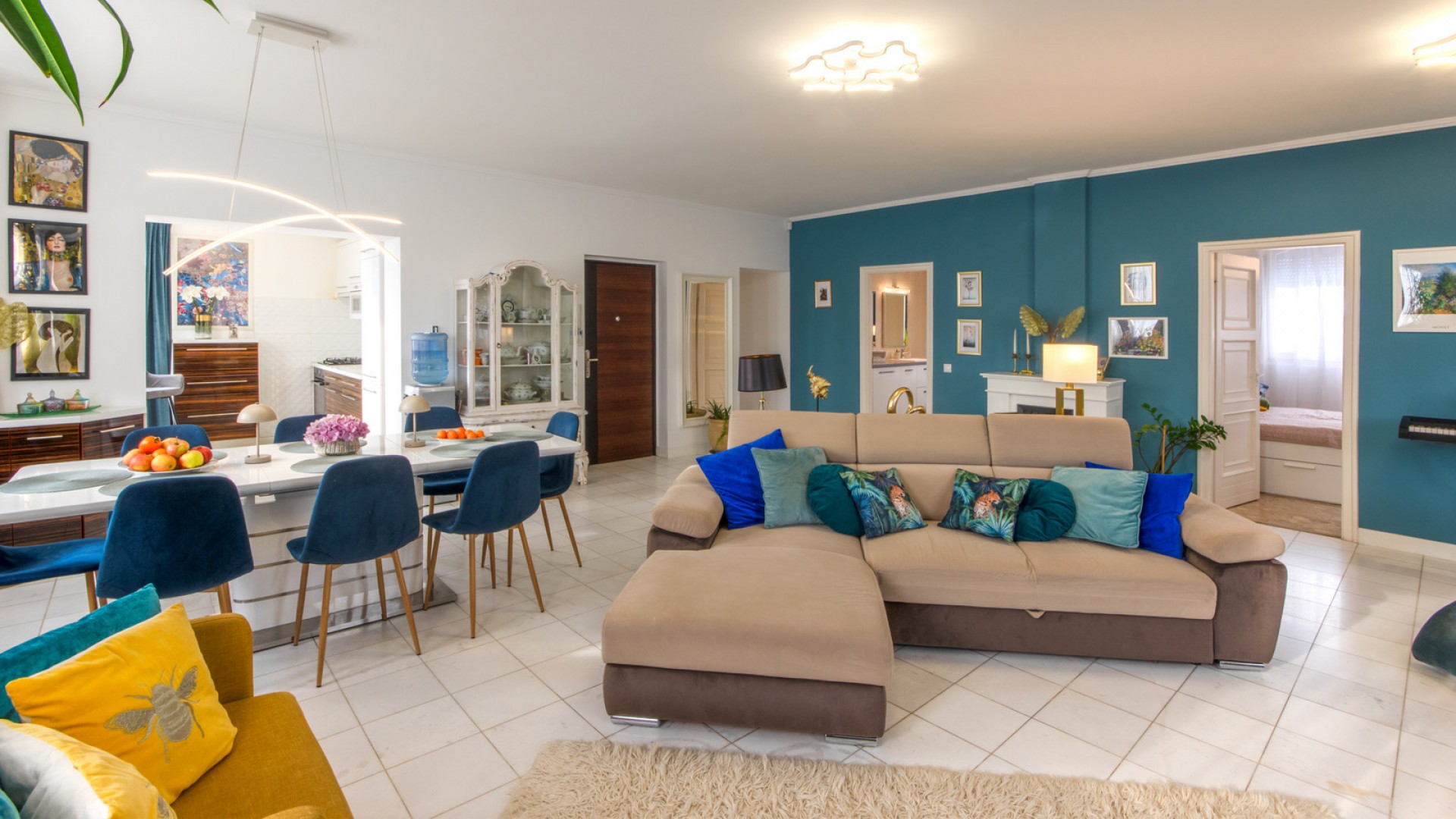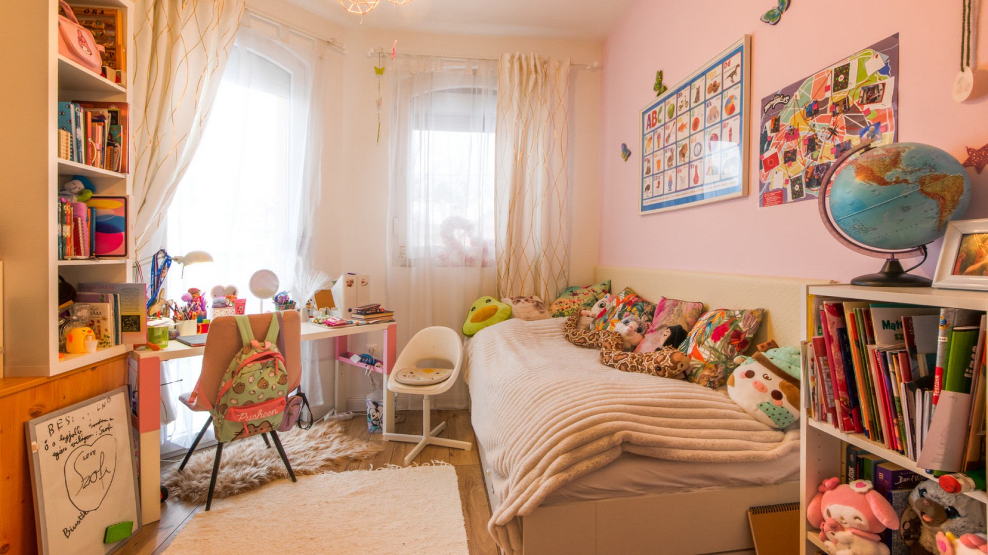 Elrendezés: nappali + 4 hálószoba, különálló konyha, 2 fürdőszoba (az egyik zuhanyzós, a másikban kád és zuhanyzó is van), valamint 2 terasz. A nappaliban egy hangulatos, elektromos látványkandalló található.