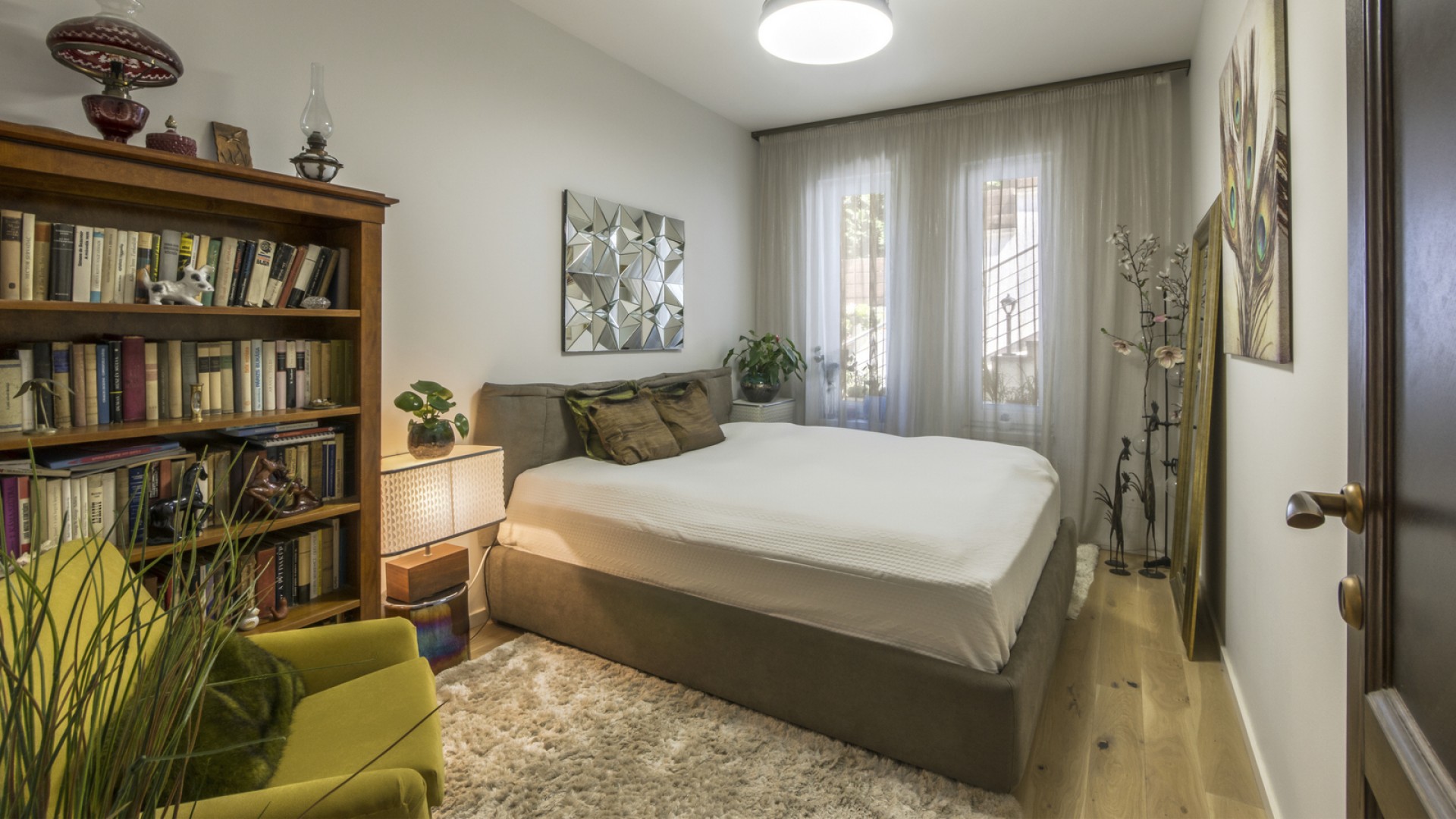 Praktikusan különválik az élettér, így teljesen intimek a lakás hátsó részén lévő hálószobák. A 3 hálószobát egy gardróbhelyiség egészíti ki, tárolóval, mosókonyhával, külön mosdóval. A tágas fürdőszobában kád és zuhanyzó is található, továbbá wc és bidé.