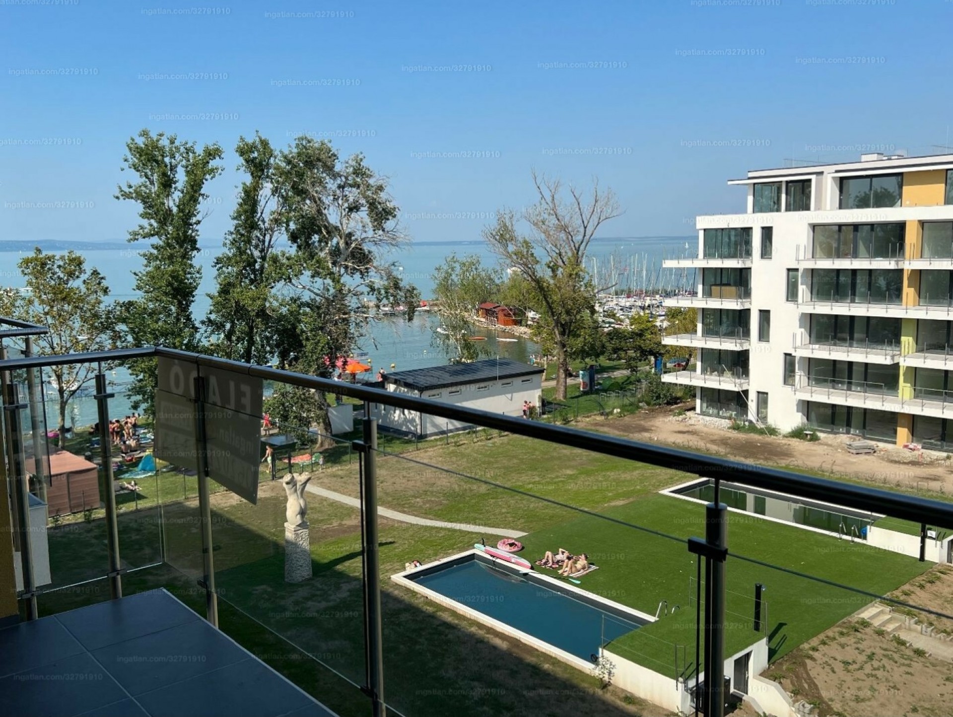 A Fregatt társasház ÖRÖK PANORÁMÁS lakását kínálom eladásra, közvetlen vízparton, 4. emeleten, panorámával a tóra, illetve a medencés kertre.