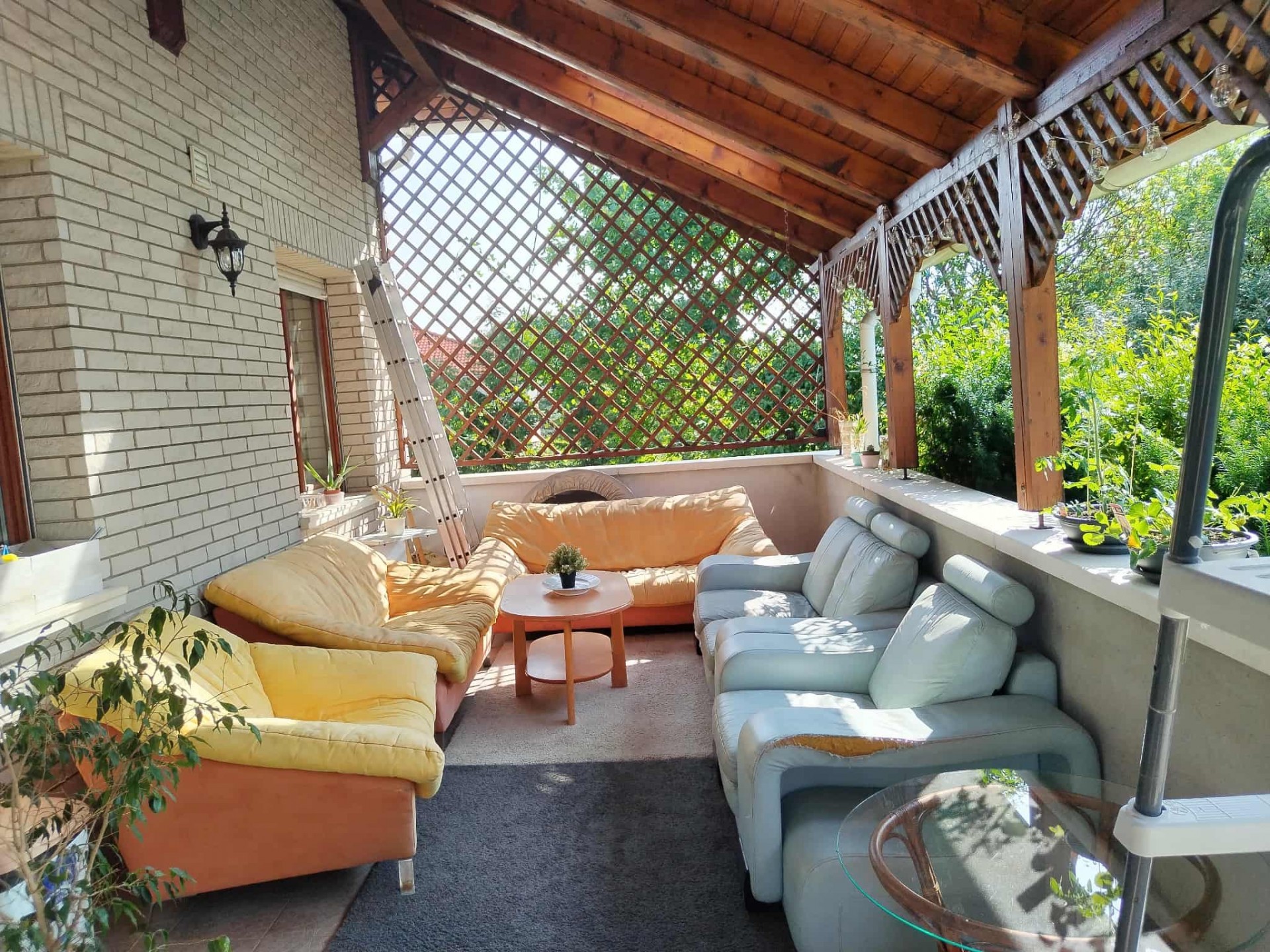 – és egy impozáns, fedett terasz, ami tökéletes helyszíne lehet baráti beszélgetéseknek vagy csendes reggeli kávézásoknak.