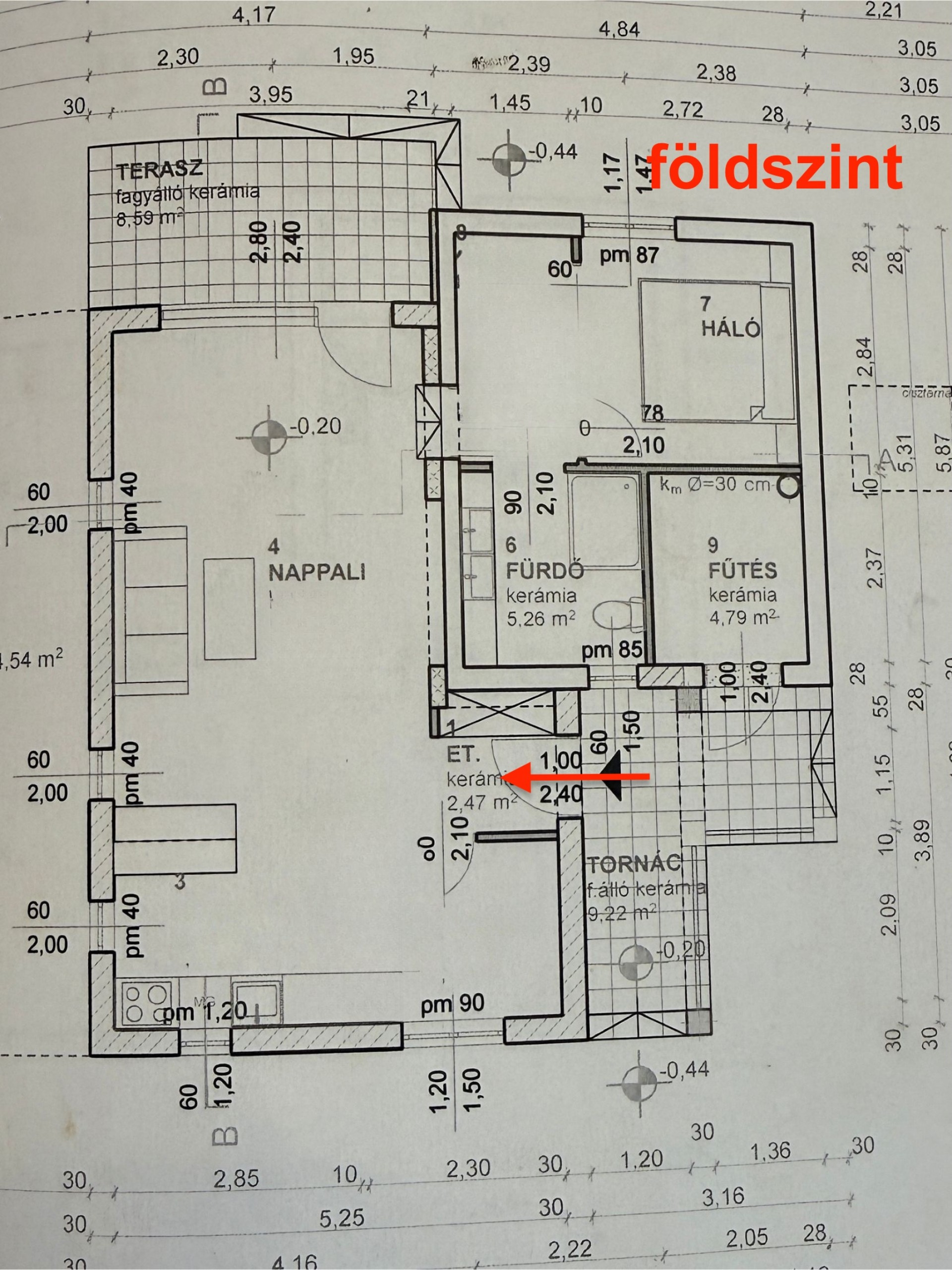 - Amerikai konyhás teraszkapcsolatos nappali, + 1 hálószoba, fürdőszoba WC-vel, közlekedő.