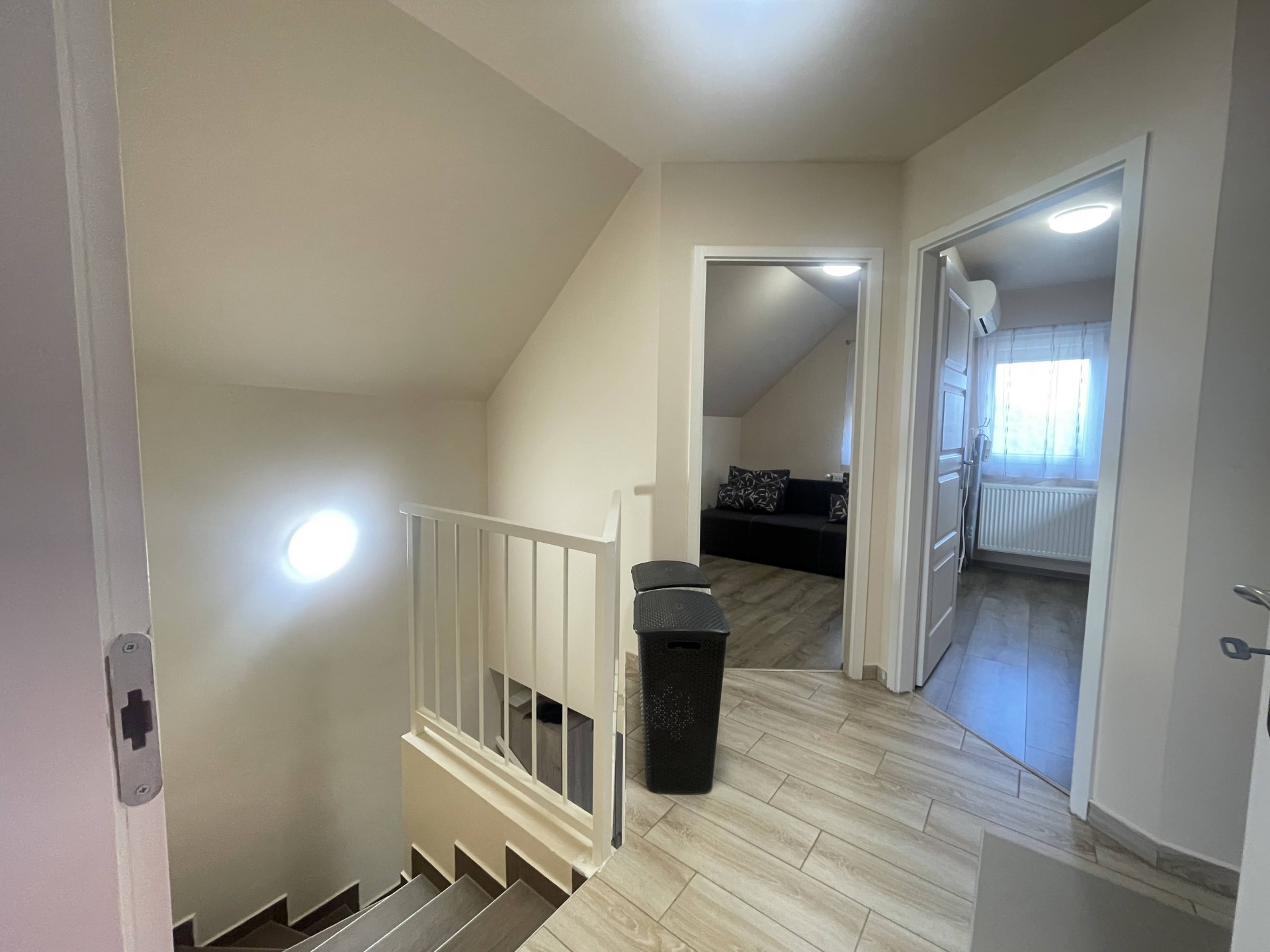 - Modern, energiatakarékos megoldások – FŰTÉS: Riello típusú kondenzációs kombi gázkazánnal történik, radiátoros hőleadókkel, kiegészítve minden helyiségben inverteres hűtő-fűtő klímával. MELEGVIZET szintén a kazán szolgáltatja.