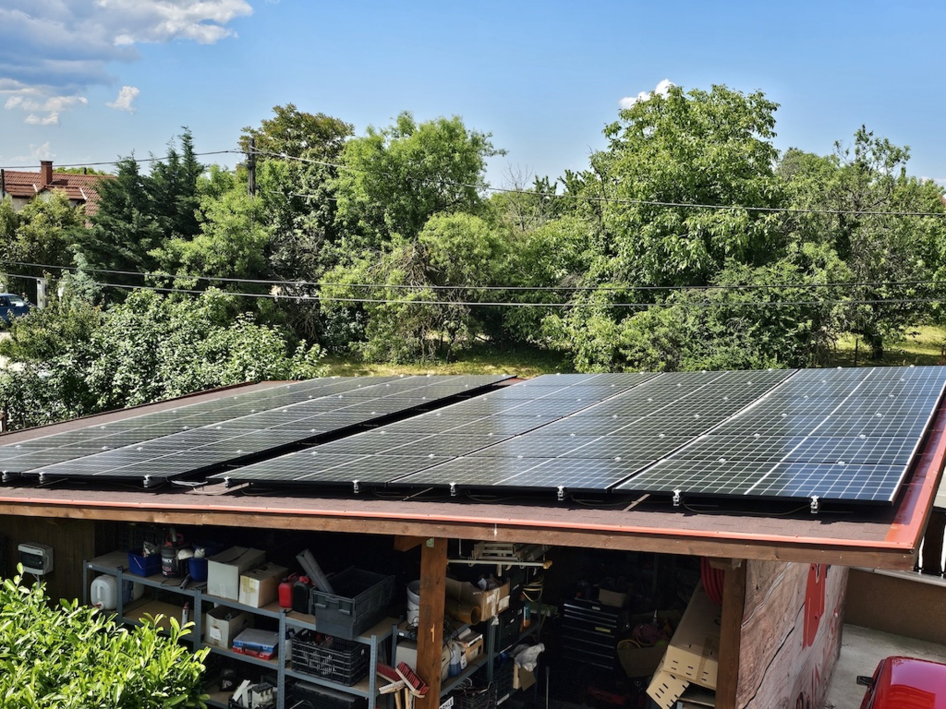 - NAPELEMRENDSZER a fedett beálló felett – két villanyórával (nappali + H-TARIFÁS áram), alacsony rezsiköltség!