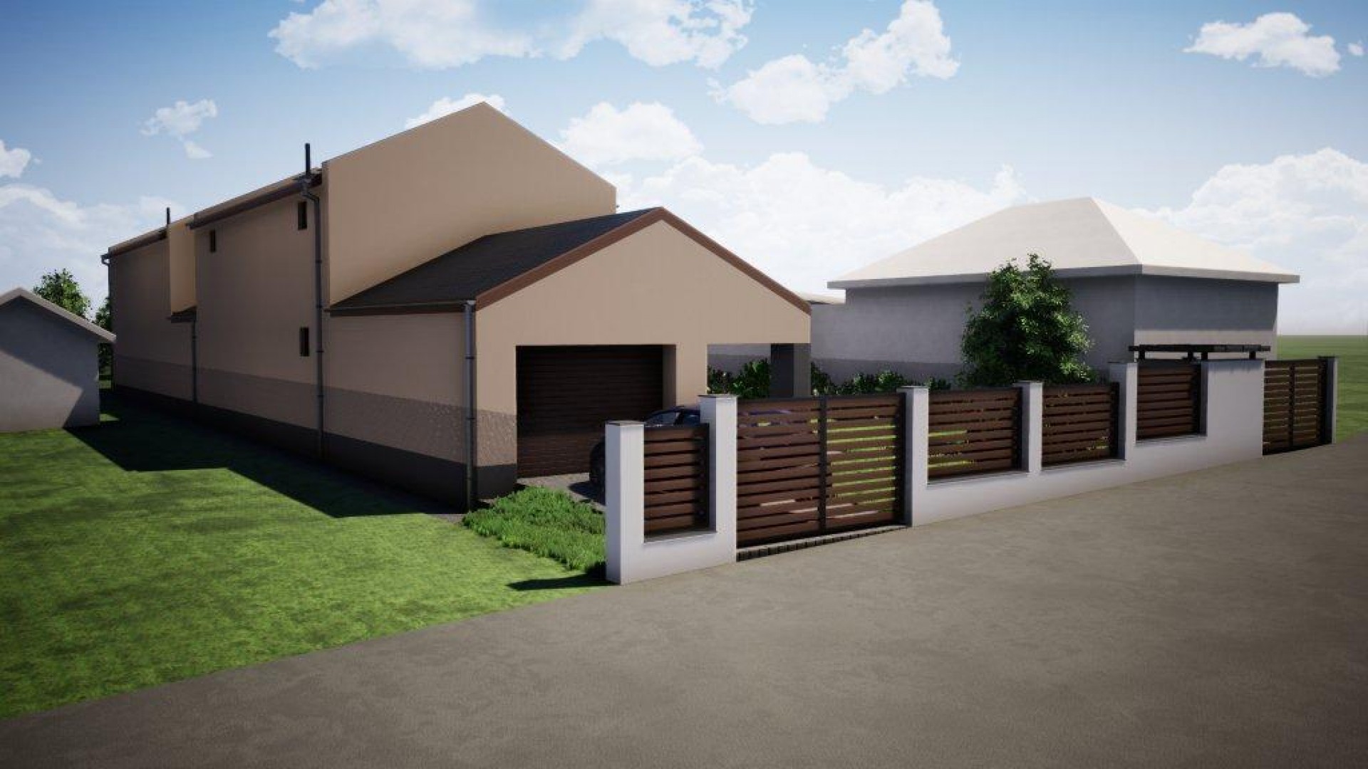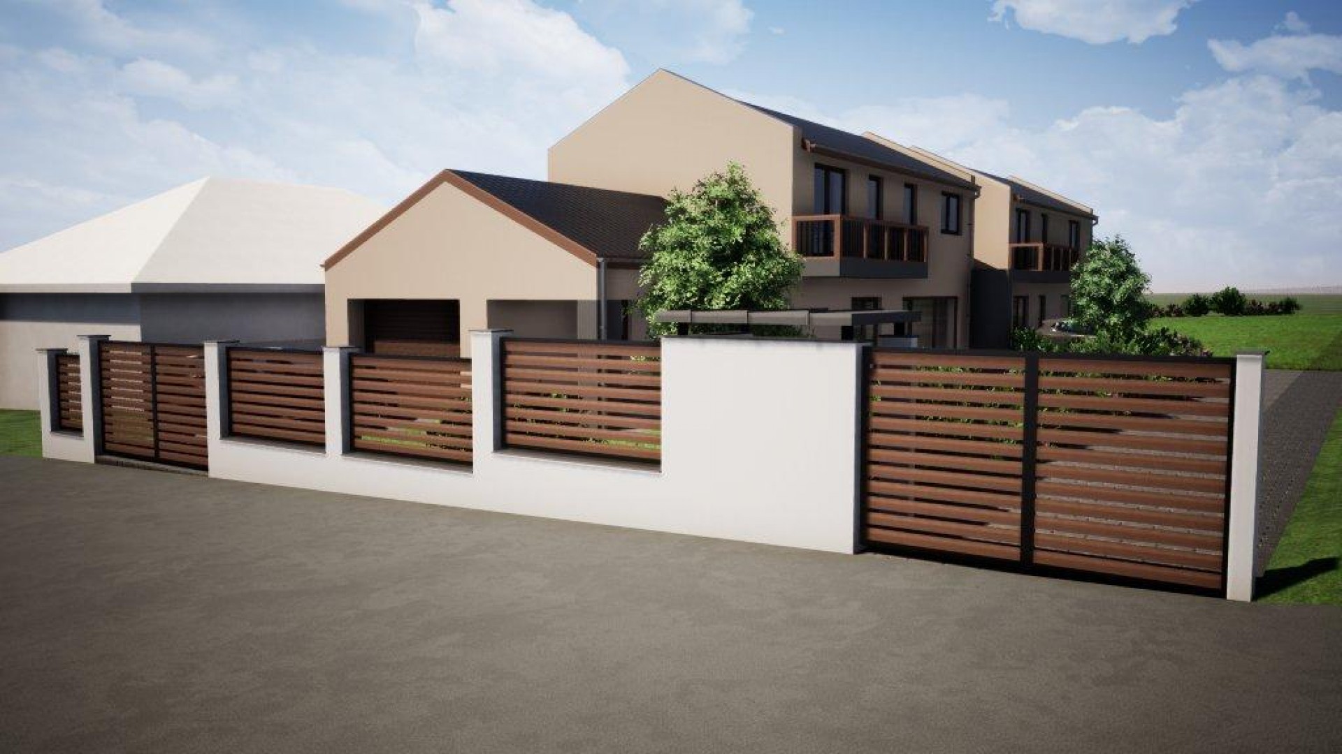 A házak közös fallal nem rendelkeznek, az ingatlanok csak a garázsoknál érnek össze, biztosítva így a családok intimitását.