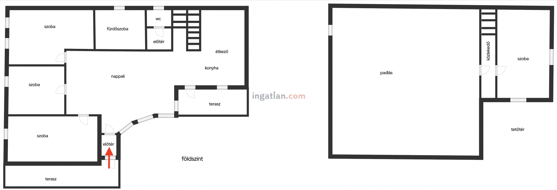 - Padlástér: kb. 50 m², beépítés előkészítve