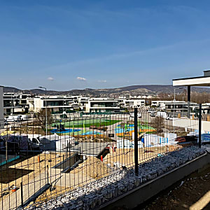 A környék csendes, nyugodt, a közlekedés nagyon jó, bevásárlási lehetőség (Tükörhegy Center), buszmegálló 2-3 perc séta távolságra, játszótér, sportpálya, park gyakorlatilag a ház előtt.