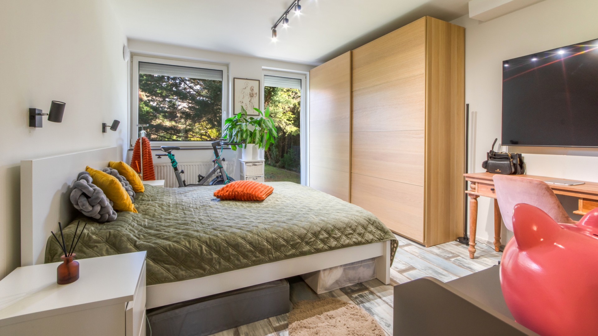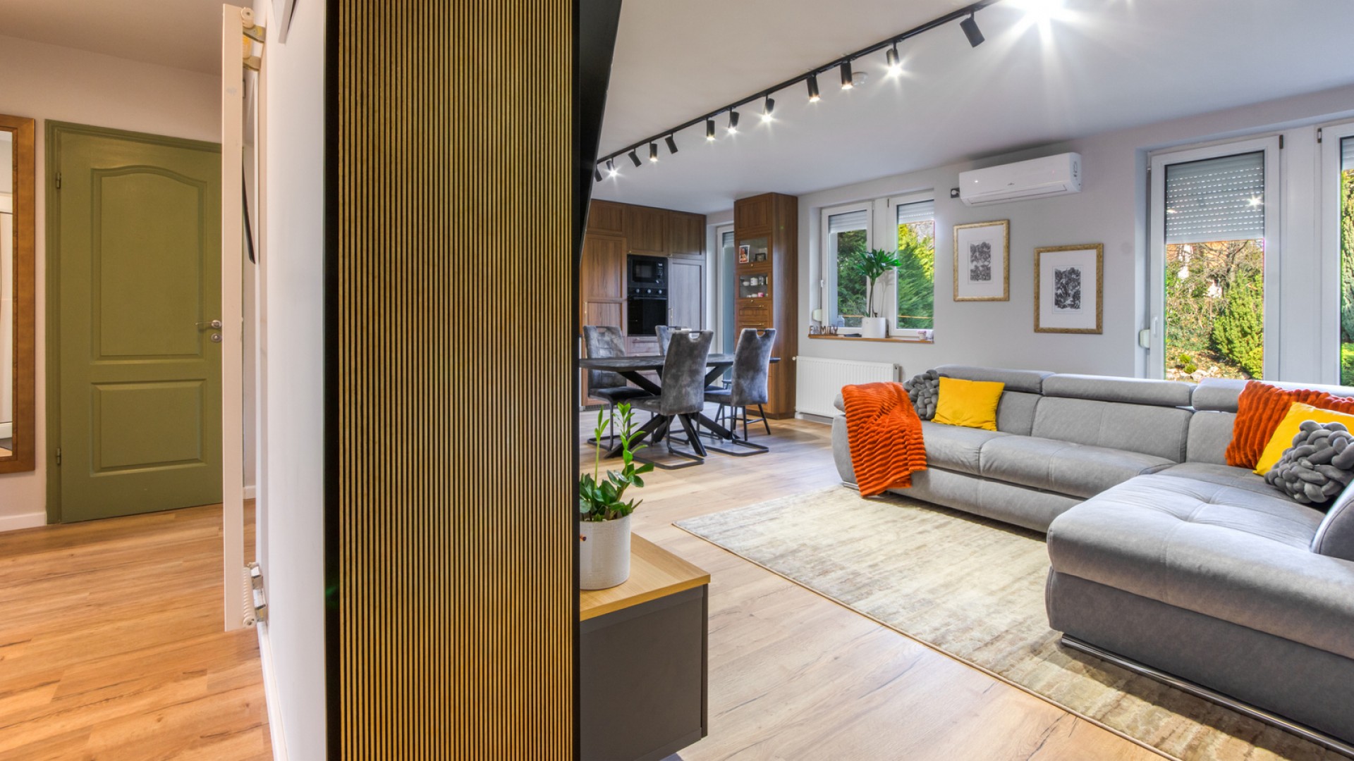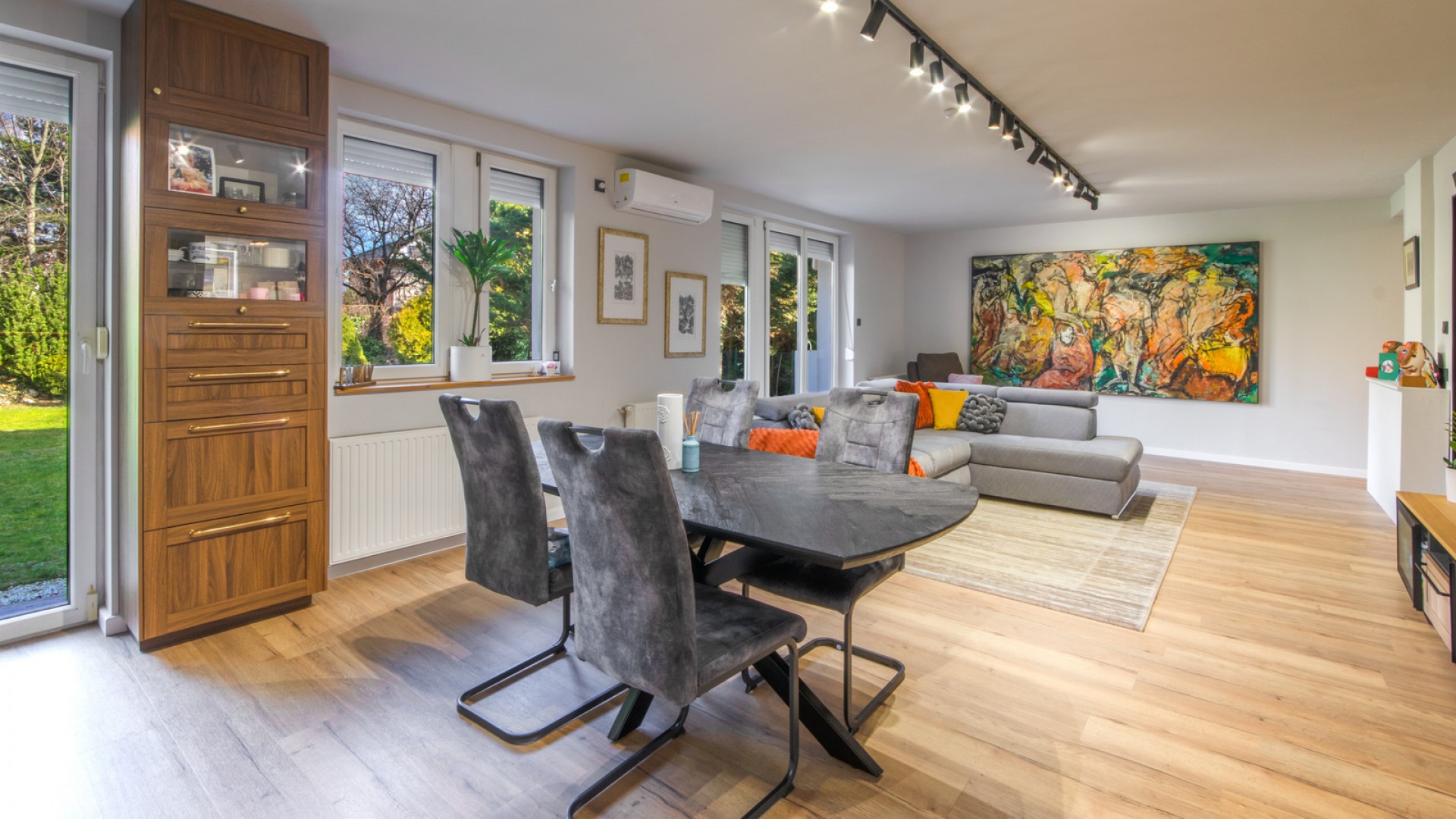 A nappali-konyha-étkező egység tágas, terasz és kertkapcsolatos. 3 hálószobája, 2 fürdőszobája, 2 állásos autóbeállója -elektromos töltési lehetőséggel- biztosítja a kényelmes mindennapokat.