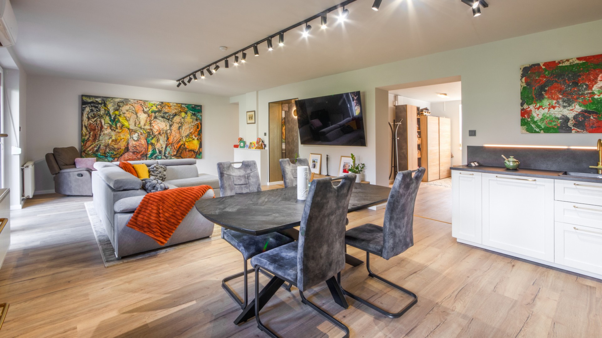 A 4 lakásos társasház lakása teljes felújításon esett át, magas minőségű burkolatokkal, konyhával, teljes gépészettel.