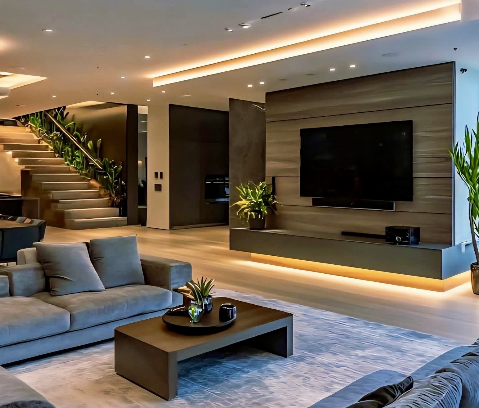Természetesen mind a világítás, árnyékolás, fűtés, klimatizálás, kamerák, öntözés, fűnyírás, jakuzzi, szauna stb. minden telefonról is vezérelhető.