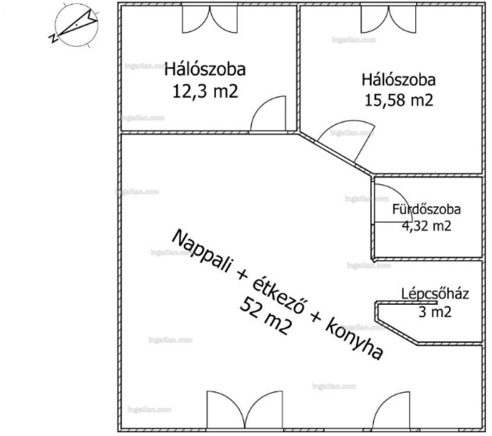 | Szobák száma | Nappali + 3 |
