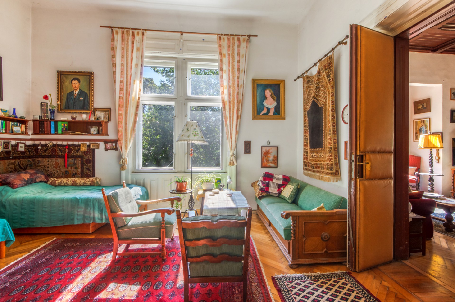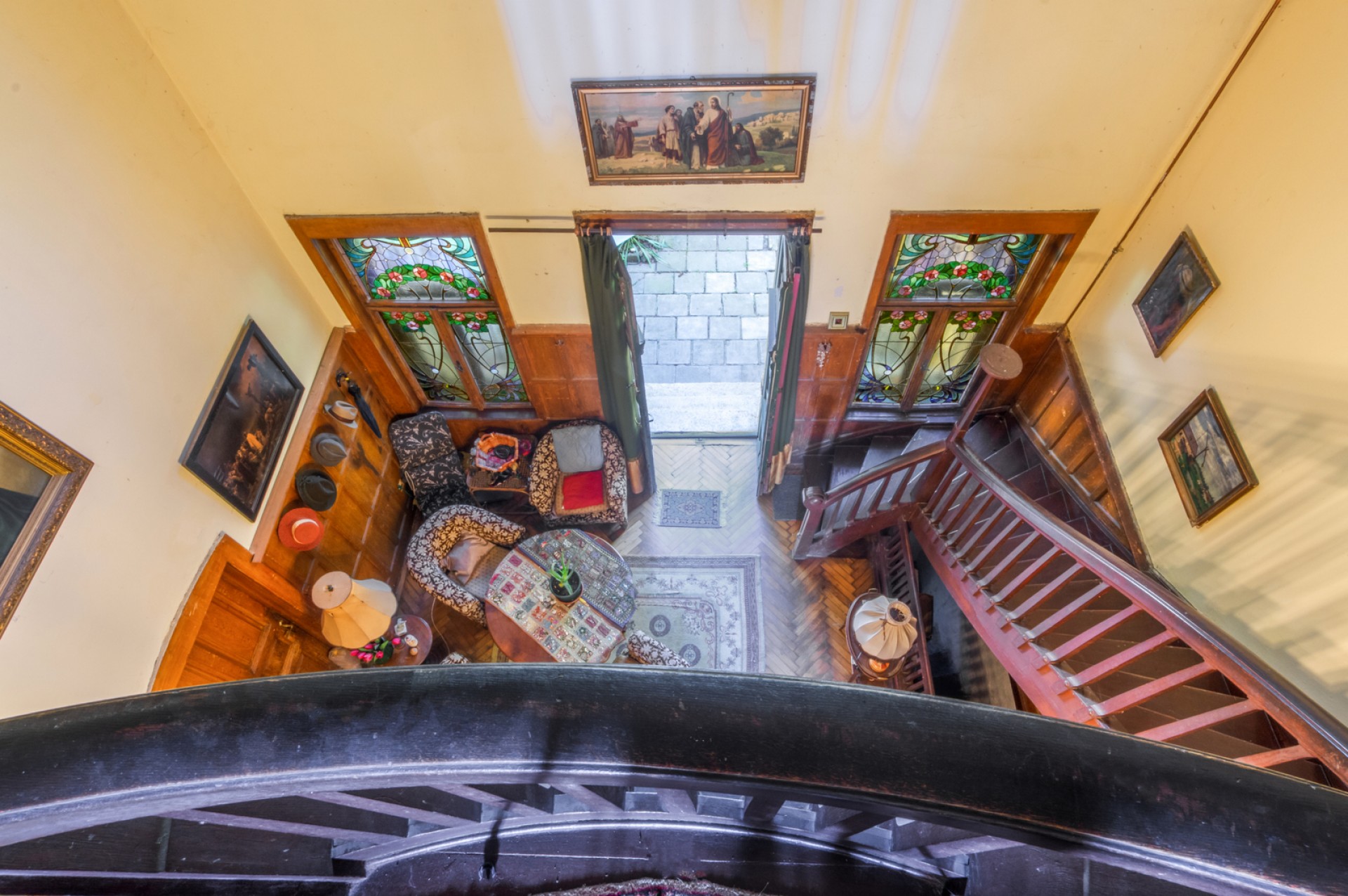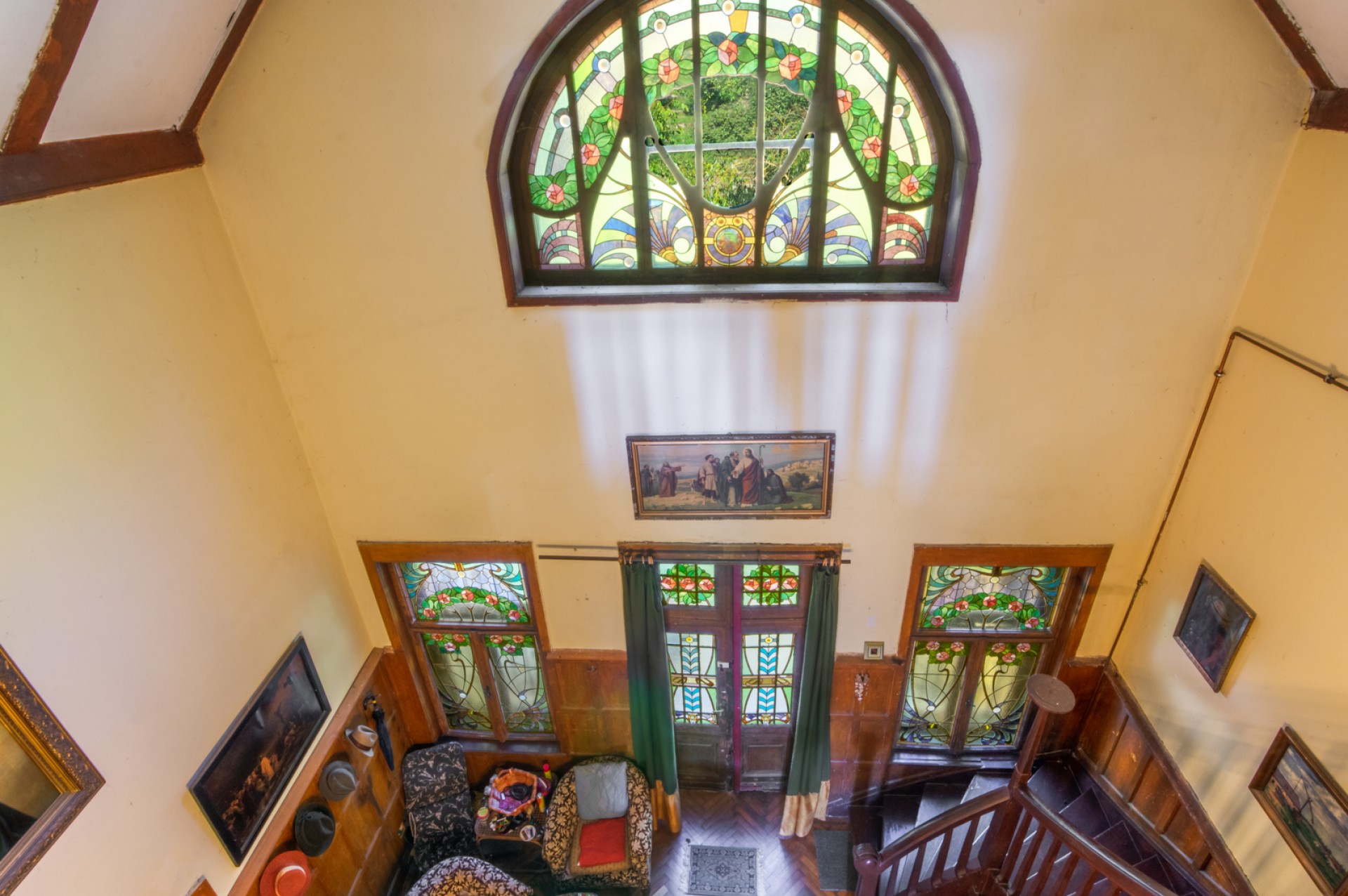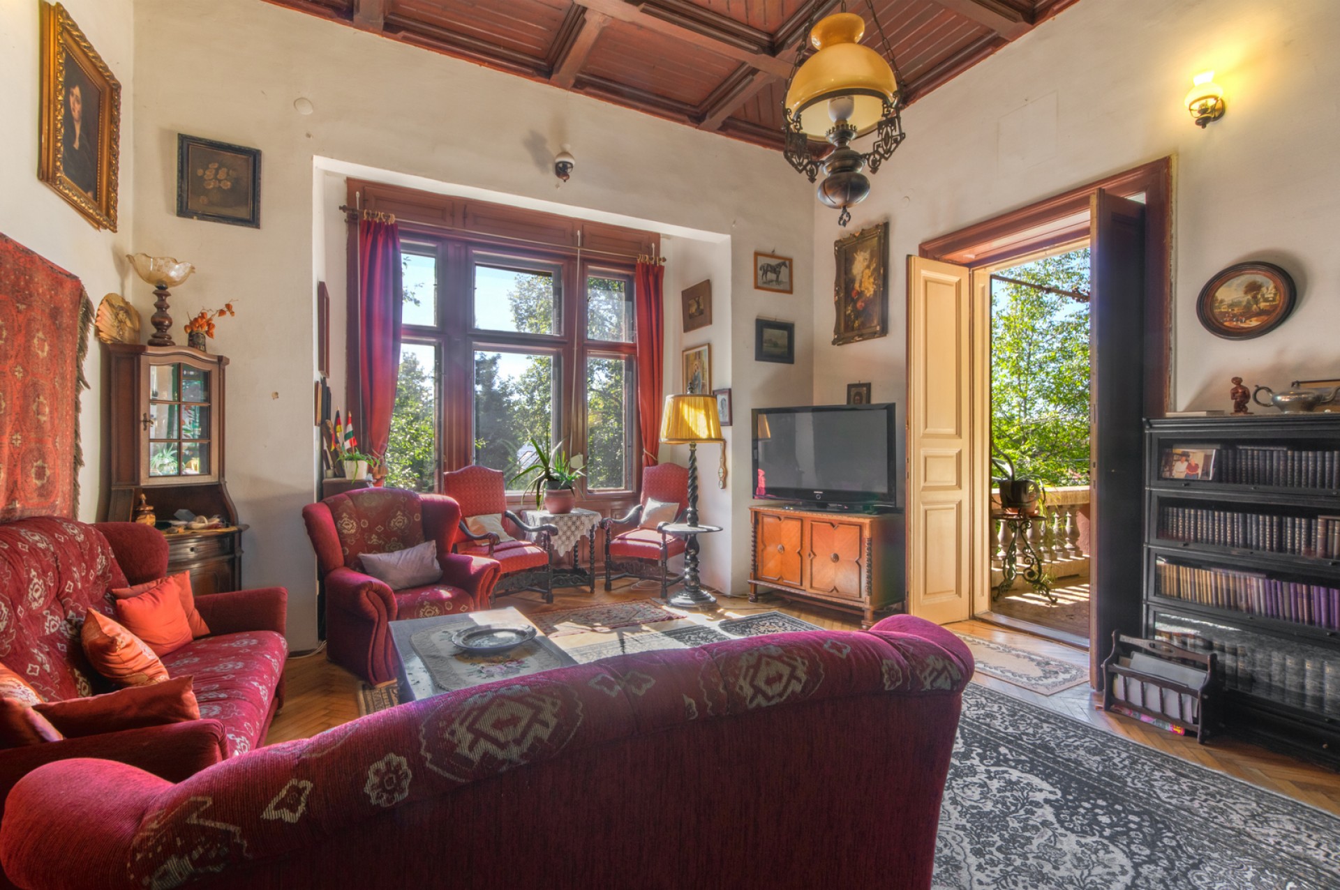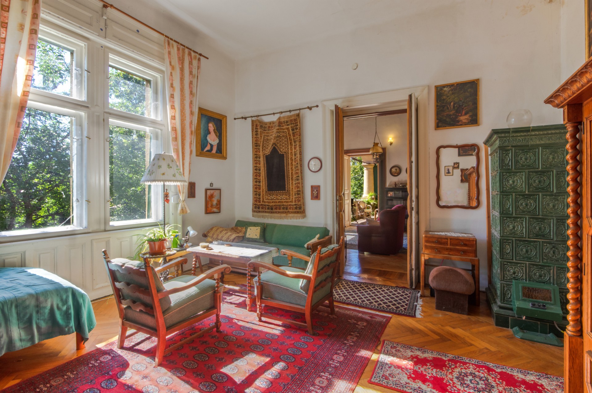 Impozáns szalon, klasszikus fogadótér, korhű nagy belmagasságú manzárd
