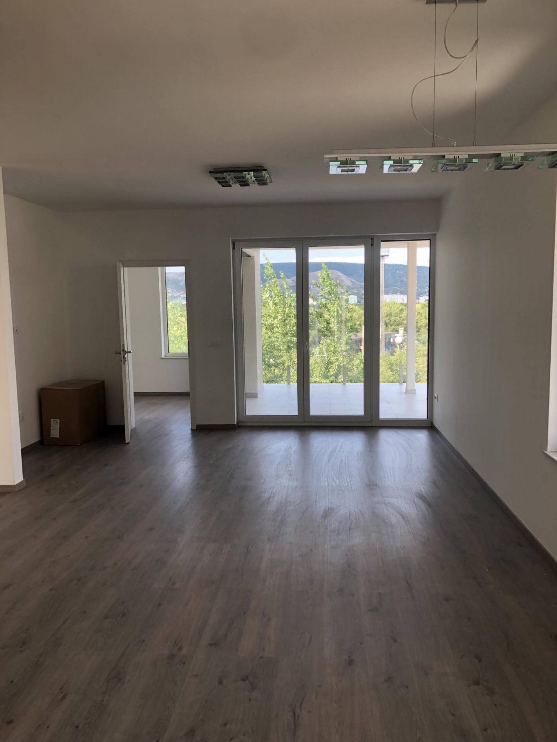 Az ideális kialakítású lakás felújítása építése most fejeződött be. A nappali-konyha-étkező egy tér, és további 2 külön hálószoba kapott még teret. A konyha Nobilia bútorral felszerelt. Az üvegkorlátos nappaliból a budaörsi hegyekre látunk rá, ami a tágasság érzetét fokozza.